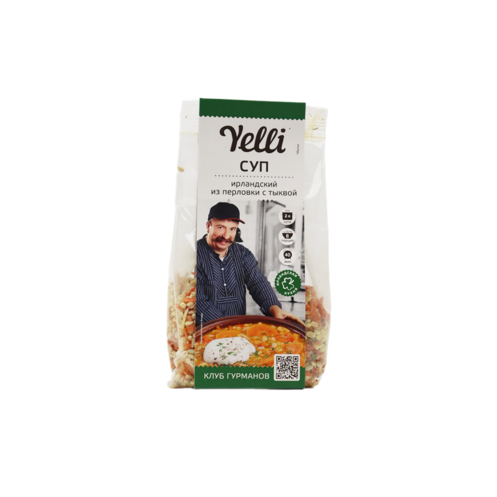 Это простое и вкусное ирландское перловочное суп-пюре с тыквой Yelli 200 г Оно приготовлено из перловки, моркови, лука, тыквы Yelli 200 г, масла и пряностей. Для получения более насыщенного вкуса можно добавить сливки или сметану. Этот суп прекрасно подходит для завтрака или легкого обеда.