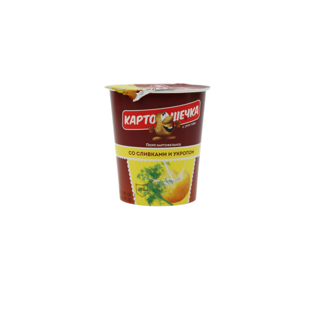 Пюре «Картошечка со сливками и укропом» в упаковке весом 38 г амм - это нежное и ароматное блюдо, которое сочетает в себе вкус картофеля, сливок и свежего укропа. Это блюдо обычно представляет собой готовое к употреблению пюре, которое необходимо только подогреть перед подачей.