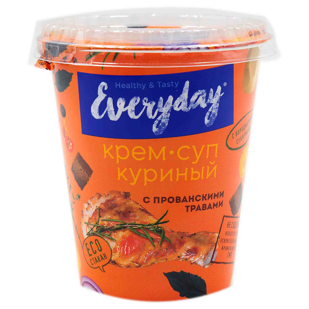 Крем-суп Everyday с курицей и прованскими травами и бородинскими сухариками - идеальное сочетание нежного вкуса и аромата. Этот суп станет отличным выбором для быстрого и вкусного обеда или ужина. Просто добавьте горячей воды, дайте настояться несколько минут и наслаждайтесь богатым вкусом. Попробуйте добавить свежие овощи или куриную грудку для более сытного блюда. Попробуйте сегодня и ощутите вкус настоящего домашнего супа!