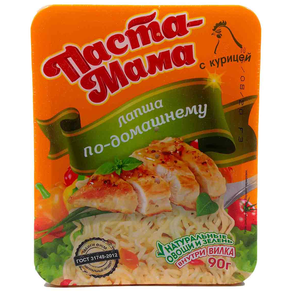 Лапша паста Мама Курица По Дом/Конт 90 г - это вкусное блюдо из лапши с куриным мясом и овощами. Состав продукта: лапша, куриное мясо, лук, морковь, перец, соль, петрушка, паприка, масло растительное.