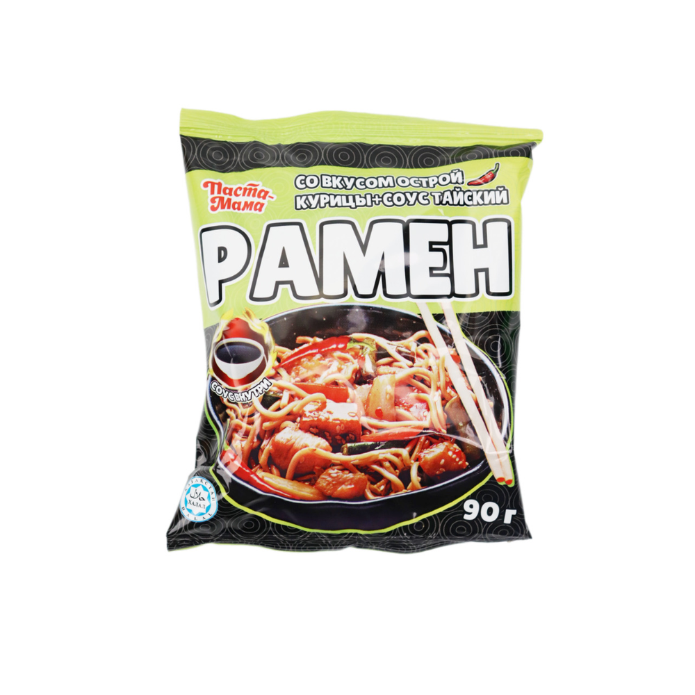 Рамен Острая Курица с Соусом Паста Мама 90 г – это вкусное блюдо из куриного филе, приготовленное по специальному рецепту. Оно приготовлено из куриного филе, приправленного соусом Паста Мама, а также добавлены приправы и пряности. В состав входят: куриное филе, соус Паста Мама, соль, перец, лук, чеснок, масло подсолнечное, пряности.