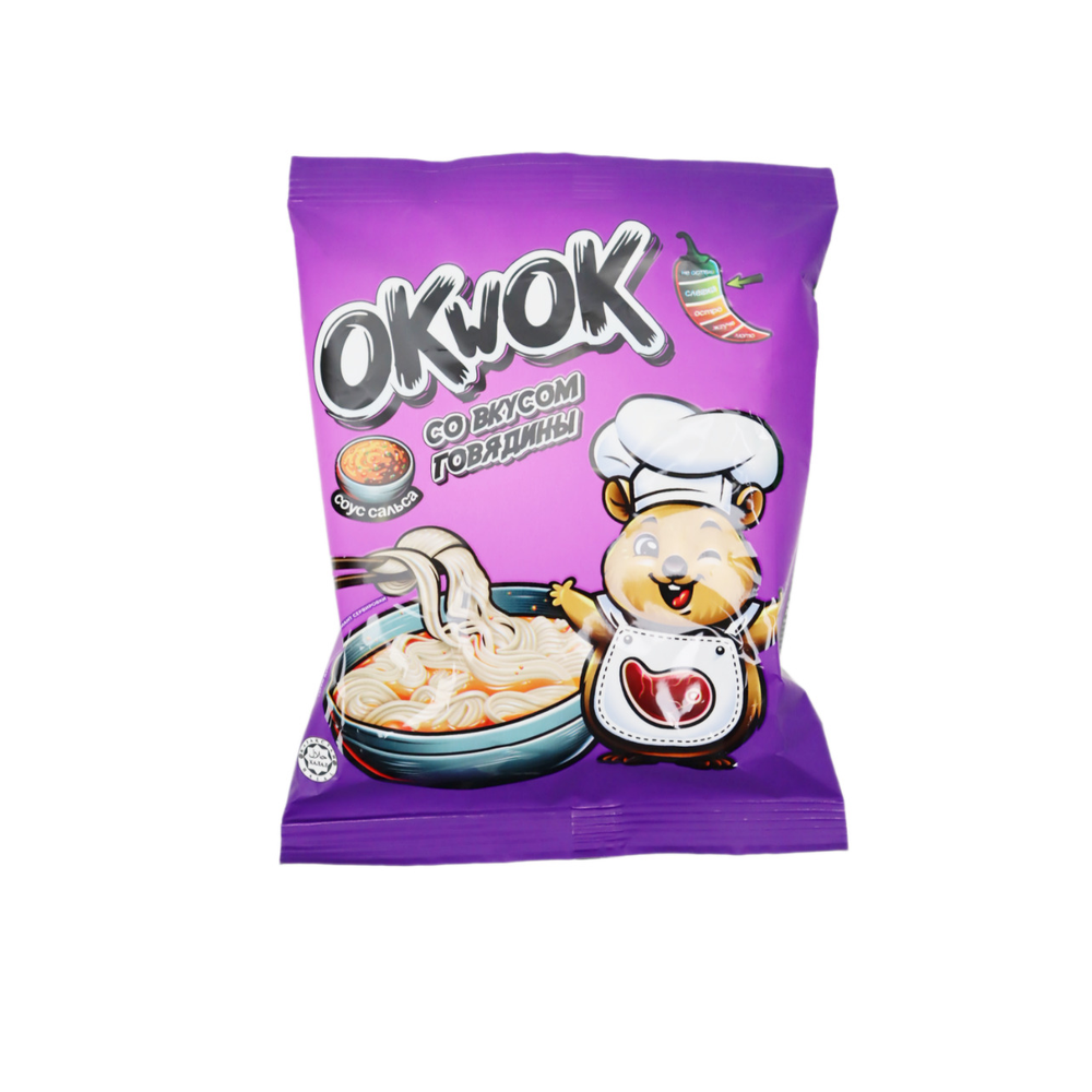 Окунитесь в мир вкусных и ароматных лапшей от Okwok! Лапша с вкусом говядины и соусом сальса - это идеальное сочетание пряных специй и нежного мясного вкуса. Сочная и аппетитная, она станет отличным выбором для быстрого и вкусного обеда или ужина. Просто добавьте горячую воду, дайте настояться несколько минут и наслаждайтесь богатым вкусом лапши в любое время дня. Попробуйте с добавлением свежих овощей и зелени для более насыщенного вкуса. Попробуйте сегодня и ощутите вкус востока прямо у себя дома!