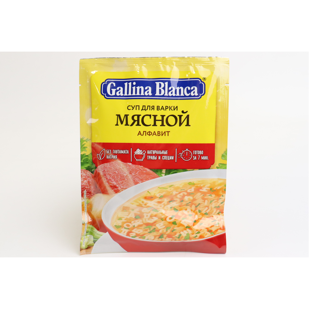Суп Galina Blanca Мясной Алфавит 59 г – это вкусный и полезный продукт, предназначенный для питания детей и взрослых. Он содержит мясной алфавит, который представляет собой мясную пасту, добавленную в суп. Состав супа включает в себя мясной алфавит, морковь, лук, перец, помидоры, картофель, масло сливочное, масло подсолнечное, соль, перец и другие ингредиенты. Этот суп предназначен для питания детей и взрослых и имеет положительное влияние на здоровье.
