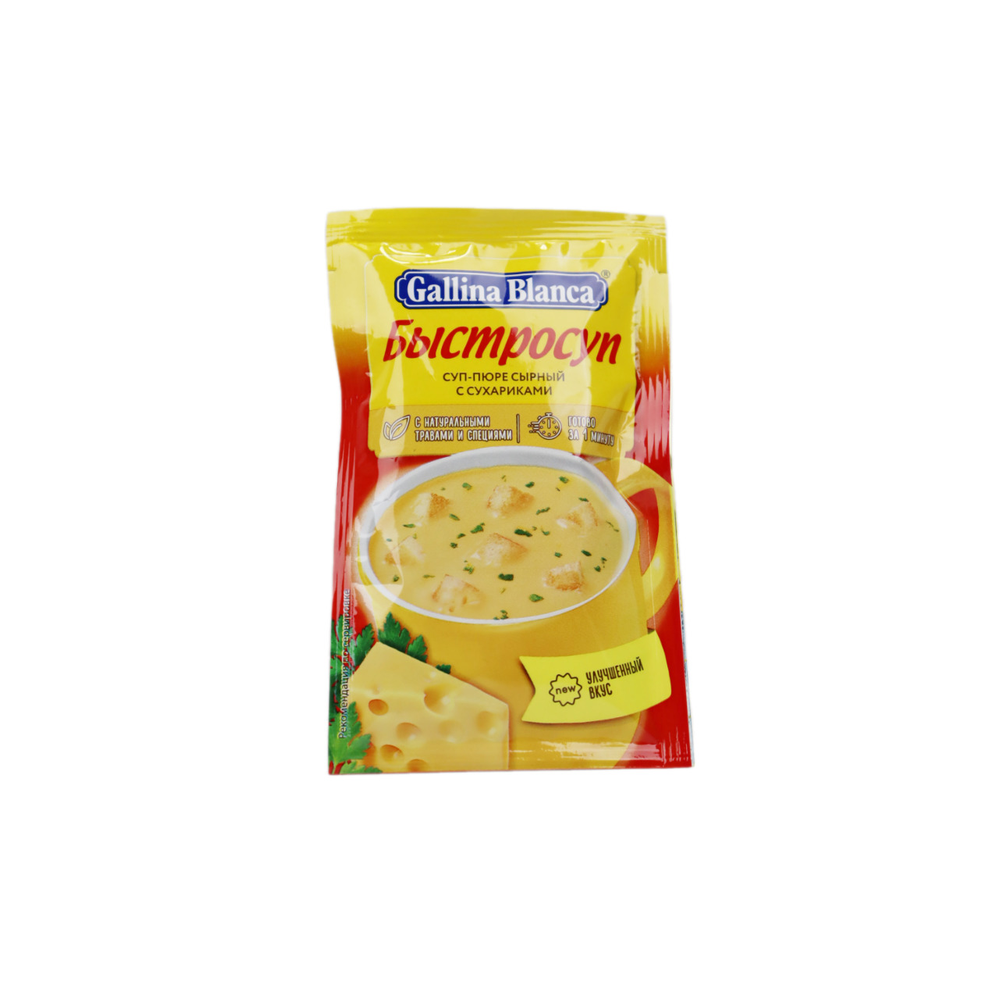 Быстросуп «Сырный» с сухариками - это вкусное сочетание нежного сырного вкуса с хрустящими сухариками. Этот суп-пюре легко приготовить, просто добавьте горячую воду и перемешайте. Получившийся суп обладает насыщенным ароматом и нежной текстурой, а сырные сухарики придают ему дополнительный хрустящий элемент. Идеальный выбор для тех, кто ценит быстроту приготовления и вкусные горячие блюда в любое время дня.