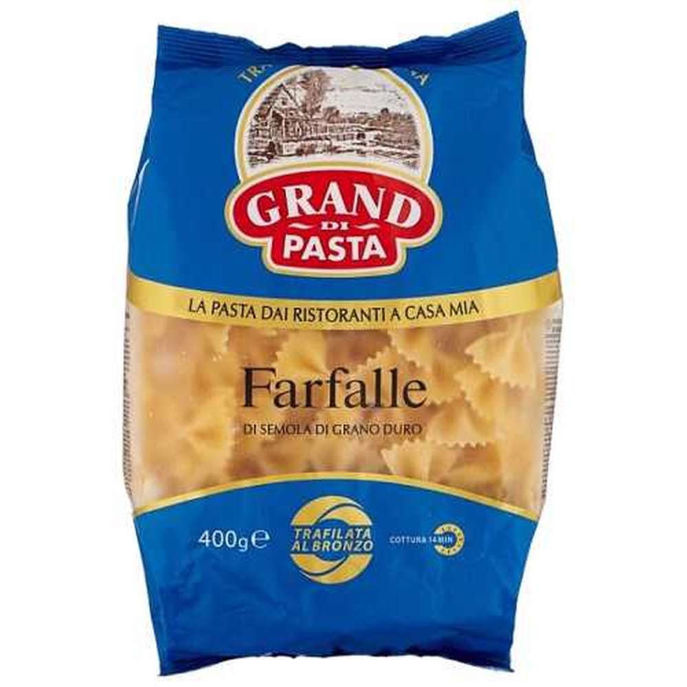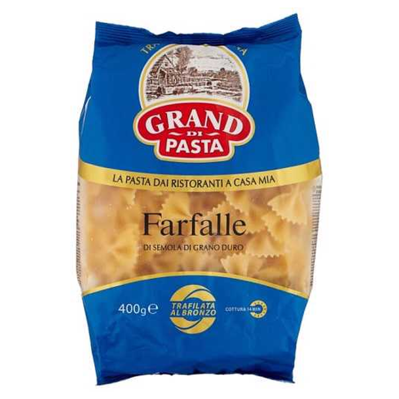 Макароны Grand Di Pasta Фарфалле - это вкусные и ароматные макароны из пшеничной муки и воды. Они имеют изящную форму и прекрасно подходят для приготовления различных блюд. Состав макарон включает в себя пшеничную муку, воду и соль.