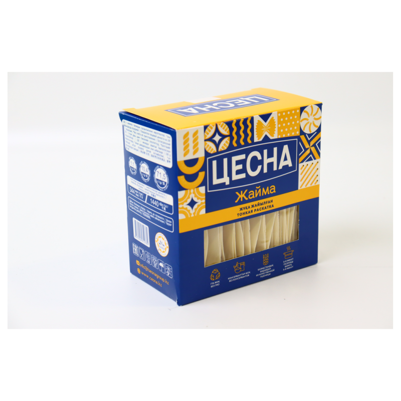 Попробуйте жайму Кэмми «Особо Тонкие Premium» в упаковке весом 200 г амм. Эта яичная жайма идеально подходит для приготовления традиционных блюд казахской кухни. Благодаря своей особо тонкой текстуре она придает блюдам изысканный вкус и аромат.