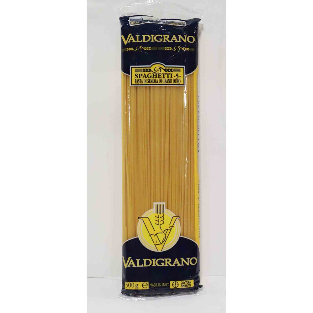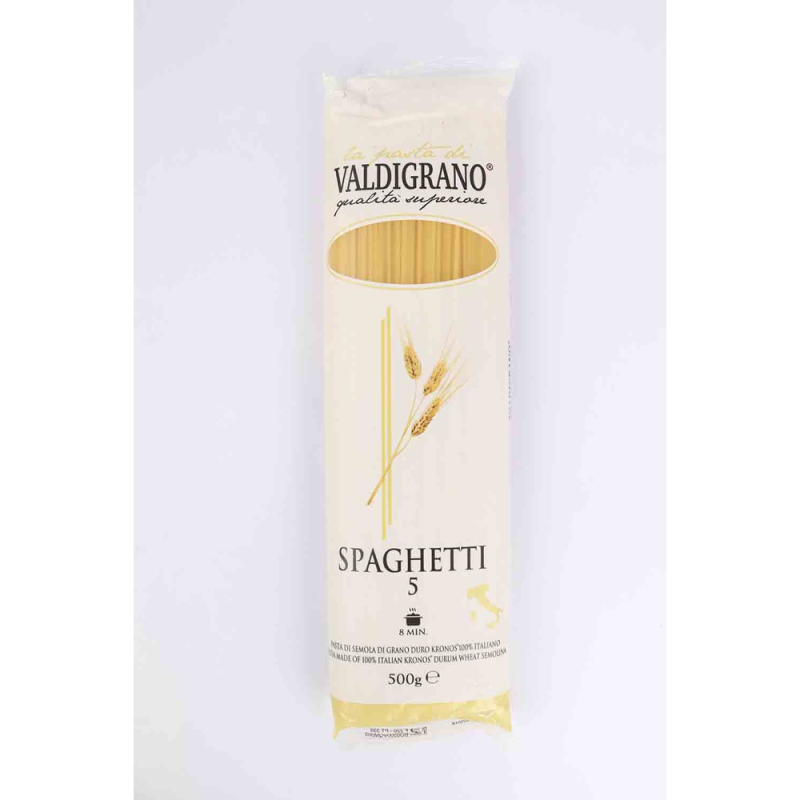 Valdigrano Qualita Superiore №5 Spaghetti - это высококачественные макаронные изделия из итальянского пшеницы. Они имеют прямоугольную форму и весят 500 г амм. Они произведены из натуральных ингредиентов и имеют высокое качество. Они идеально подходят для приготовления различных блюд из макарон.