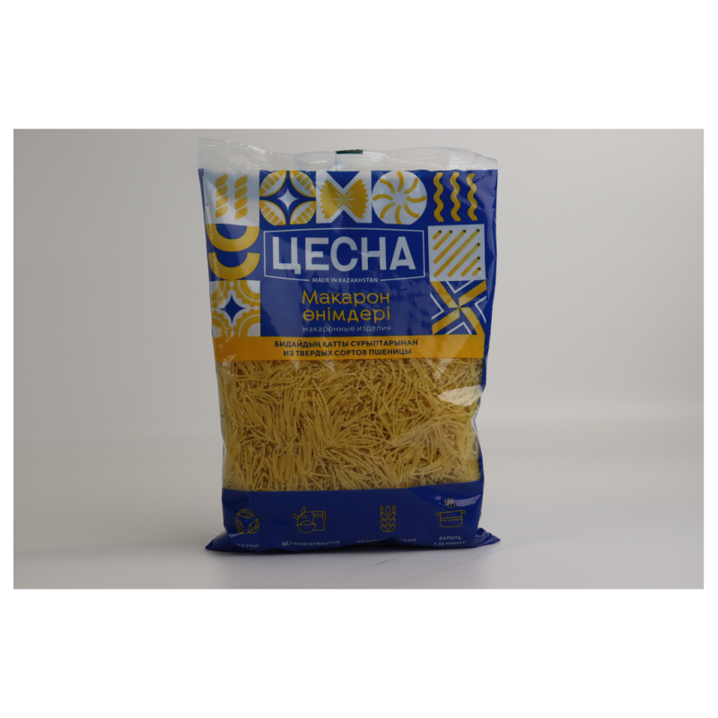 Макароны «Цесна» производятся по классическому рецепту из крупки («Дурум») элитных сортов твердой пшеницы и чистейшей воды. Именно поэтому они имеют ровный насыщенный желтый цвет, идеально гладкую поверхность и непревзойденное качество.