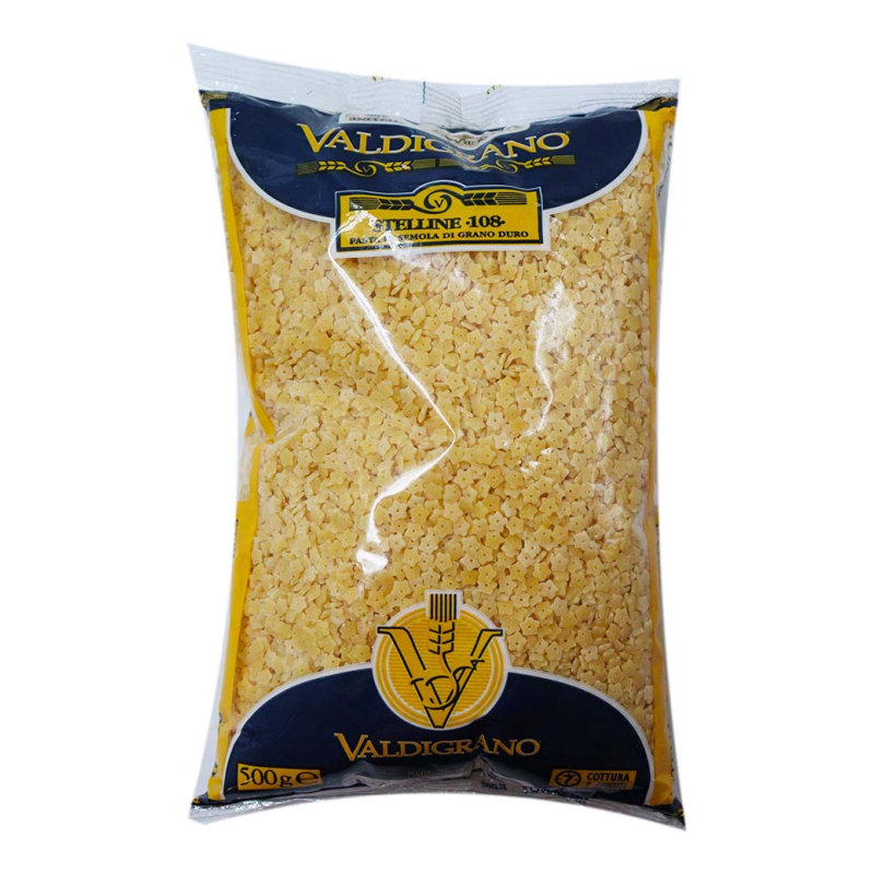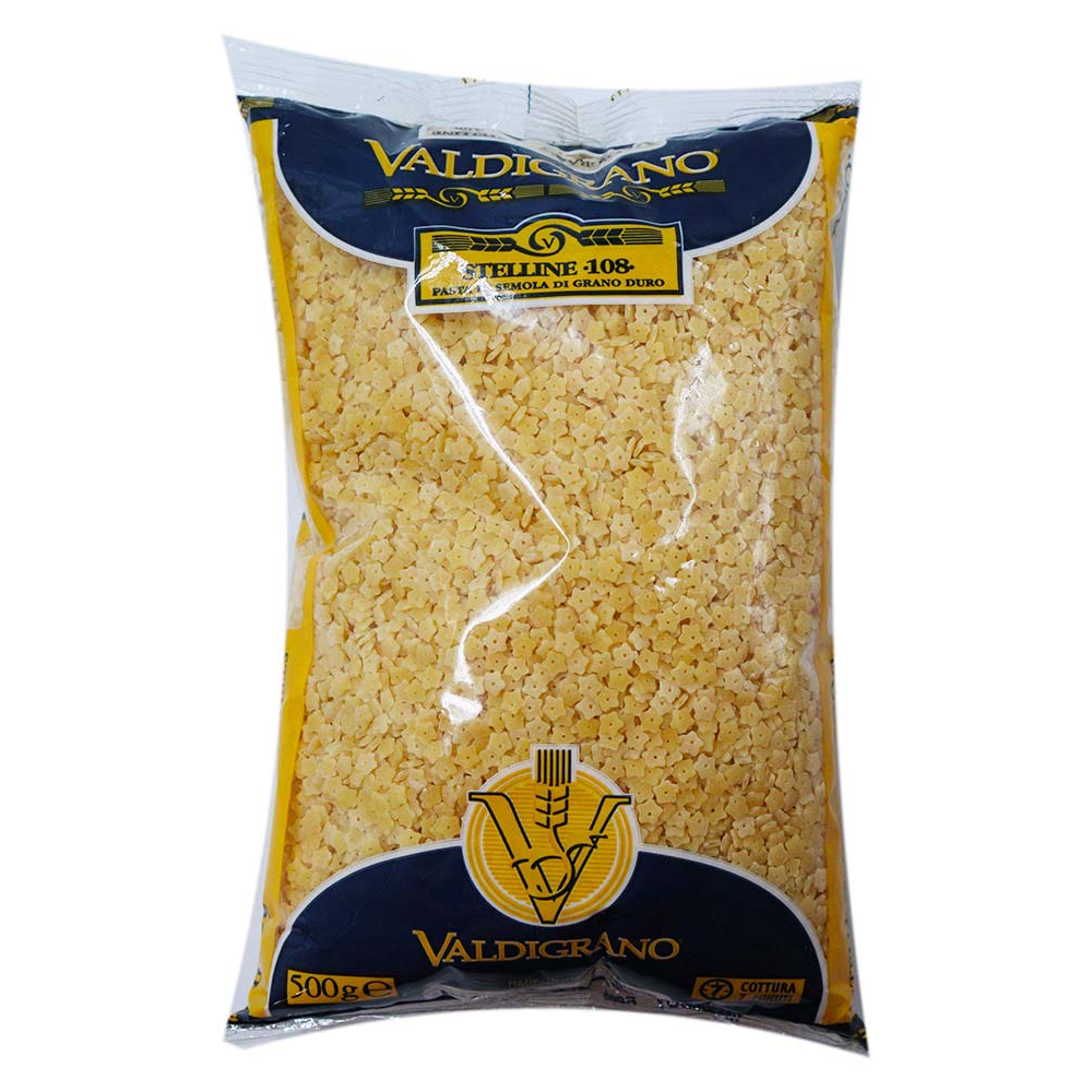 Макаронные изделия Valdigrano Stelline 108 500 г - это макаронные изделия из пшеницы в виде звездочек. Они имеют небольшой размер и идеально подходят для приготовления детских блюд. Они произведены из натуральных ингредиентов без добавления консервантов и ароматизаторов.
