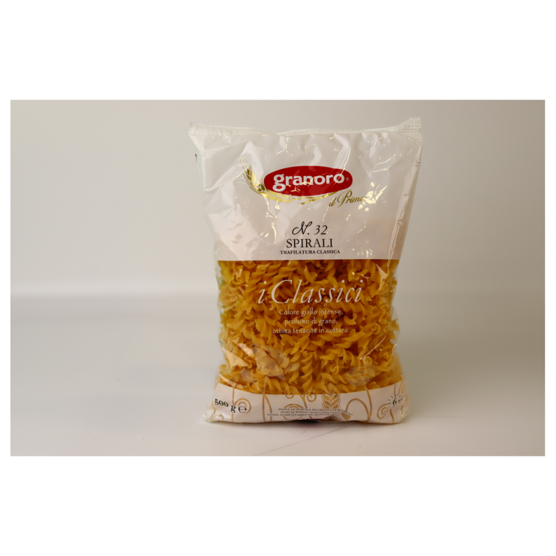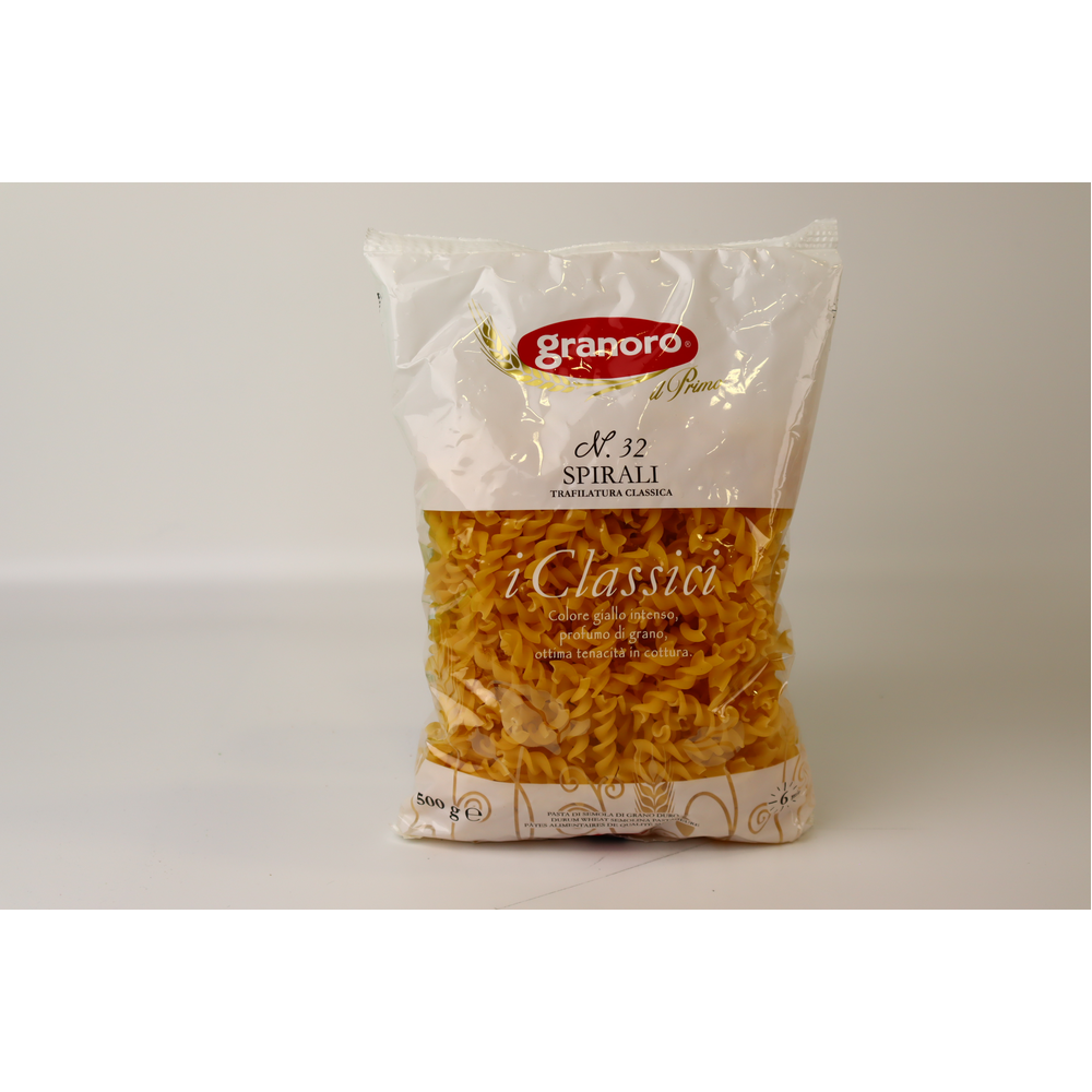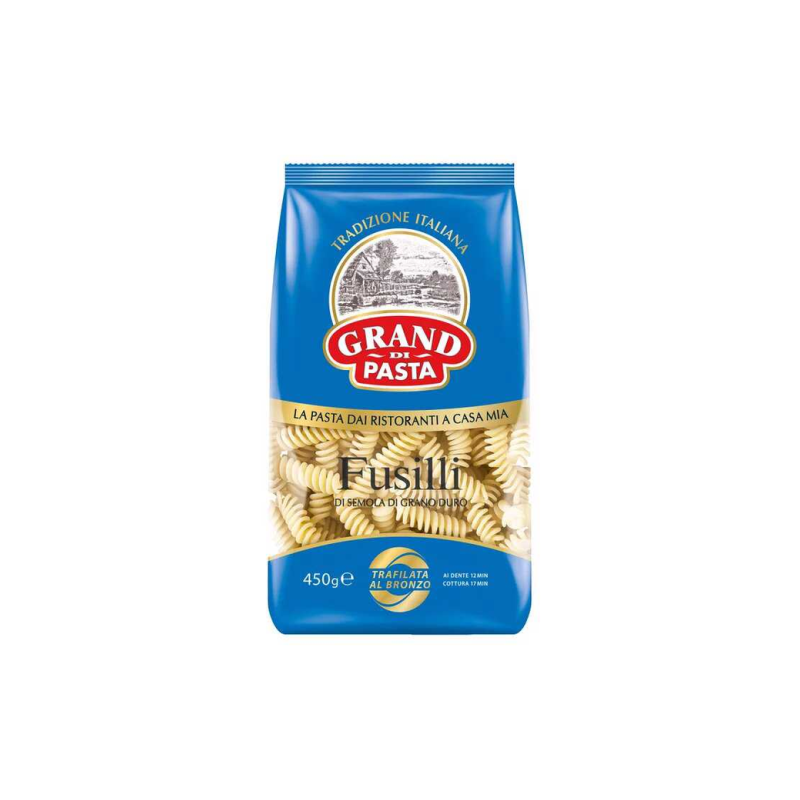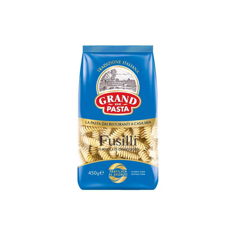 Макароны Гранд Ди Паста Спирали – это вкусные и ароматные макароны из пшеницы для приготовления вкусных блюд. Они имеют форму спиралей и весят 450 г амм. Состав макарон включает в себя пшеничную муку, воду и соль.