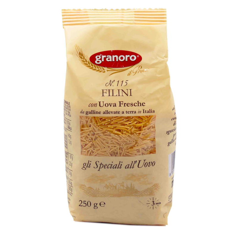 Филини Barilla порадуют поклонников легкой пасты. Сделанная в форме тонких коротких нитей, она прекрасно подходит для супов. За счет своего размера, филини очень быстро готовятся и превосходно держат форму после варки. Вам нравится готовить оригинальные и необычные блюда? В таком случае филини Barilla созданы специально для вас! Попробуйте их в крем-супе из шпината. Добавьте в него также кусочки предварительно отваренной курицы, обжаренные лук и сельдерей. Наслаждайтесь богатством вкусов этого п