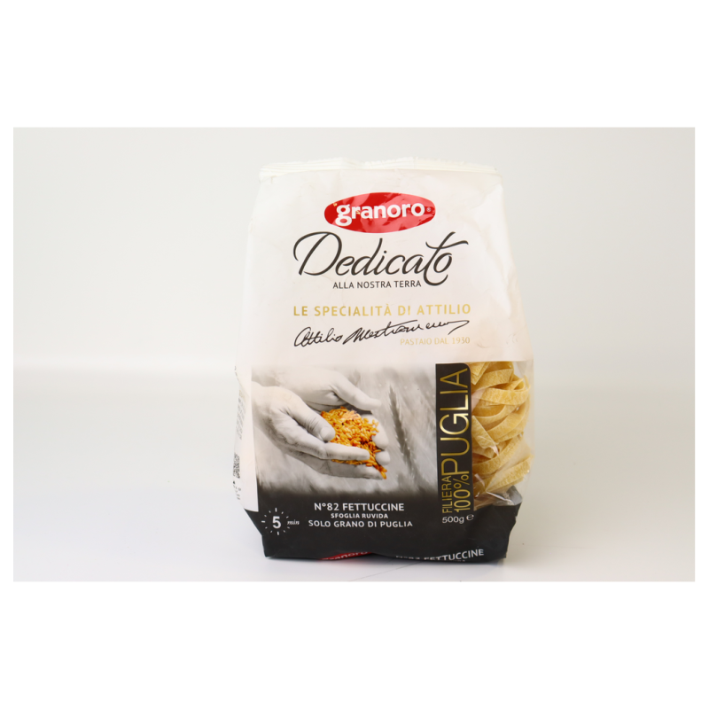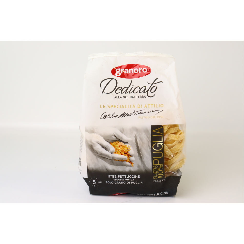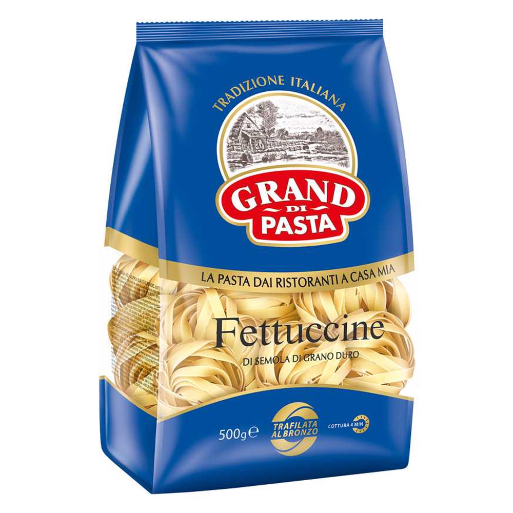 Такое название паста получила из-за внешнего сходства с ленточками (итал. Fettuccia — значит ленточка). Феттуччине — это тонкие плоские полоски теста шириной около 7 мм. Феттуччине Barilla нарезаются из тонко раскатанного теста, сделанного со всей любовью к пасте по традиционному рецепту региона Эмилия-Романья. Их шероховатая и слегка пористая текстура идеально удерживает соус на поверхности и позволяет ему максимально раскрыть все оттенки вкуса. Феттуччине, пожалуй, один из самых благородных ви