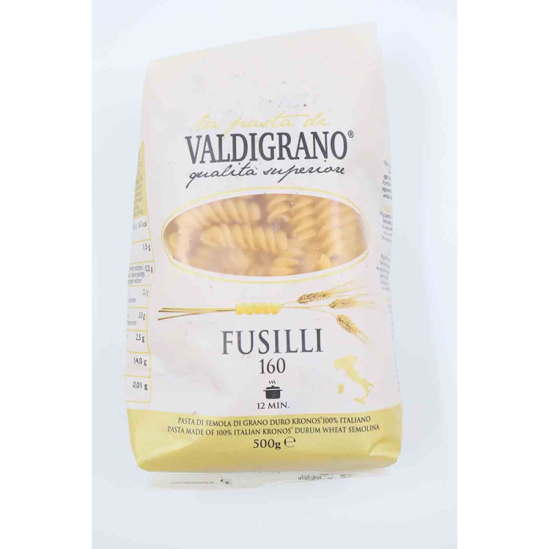 Макаронные изделия Valdigrano Qualita Superiore №160 Fusilli 500 г произведены из высококачественной пшеницы и представляют собой короткие винтовые макароны. Они имеют приятную на вкус и текстуру, а также прекрасно подходят для приготовления различных блюд. Состав изделия включает в себя только натуральные ингредиенты: пшеницу, воду и соль.
