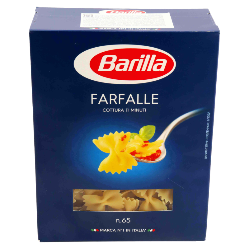 жиры — 2 г ; углеводы — 69,7 г ; пищевые волокна – Зг; натрий – 5мг. Barilla G. е R. Fratelli - Società per Azioni - Via Mantova 166, Parma, Италия. (F) Barilla G. eR. Fratelli - Societa per Azioni - S. Foggia, Италия. (Q01) Ooo «Барилла Рус». РФ, Хранить при температуре не более 40°С