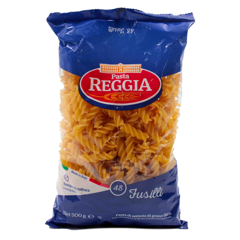 Фузилли Reggia – это итальянская паста из муки и воды, произведенная из высококачественных ингредиентов. Она имеет длинную форму и идеально подходит для приготовления большинства блюд из пасты. Фузилли Reggia состоит из муки пшеницы, воды, соли и пальмового масла. Она предлагается в удобной упаковке по 500 г амм.