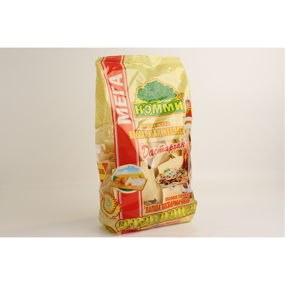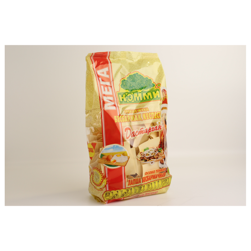 Лапша бесбармачная яичная Мега Дастархан от Кэмми - это идеальный выбор для приготовления сытных и вкусных блюд. Упаковка весом 450 г амм позволяет приготовить большое количество порций для всей семьи или гостей. Благодаря высокому качеству и свежести продукта вы сможете насладиться неповторимым вкусом лапши.