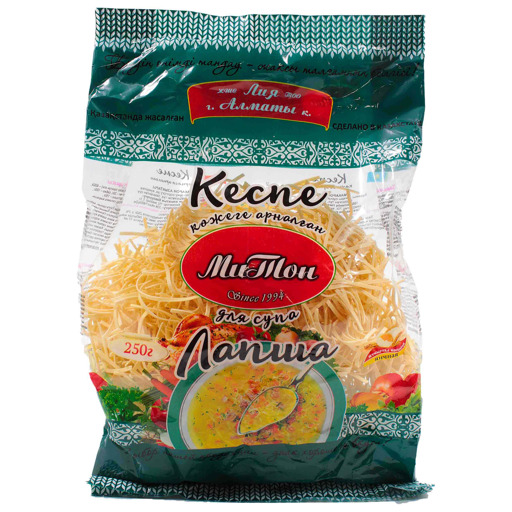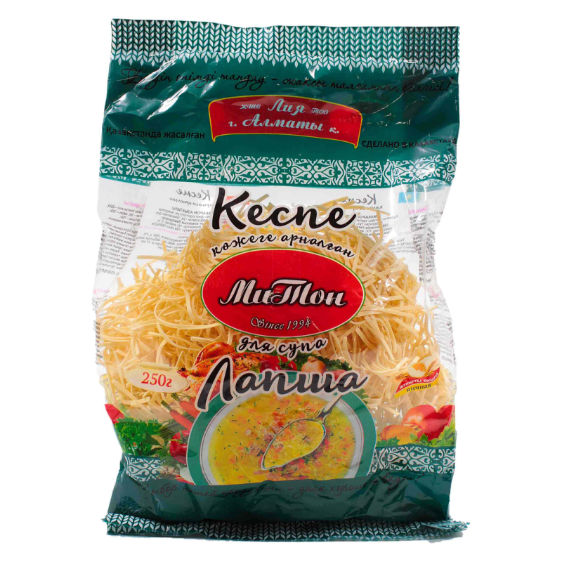 Лапша Алматинская Митон - это вкусный и ароматный продукт из простых и натуральных ингредиентов. Она состоит из муки пшеницы, воды, соли и природного пряного консерванта. Она идеально подходит для приготовления блюд из лапши, а также для приготовления супов, салатов и других блюд. Она предлагает вкусный и ароматный вкус, а также полезные питательные вещества.