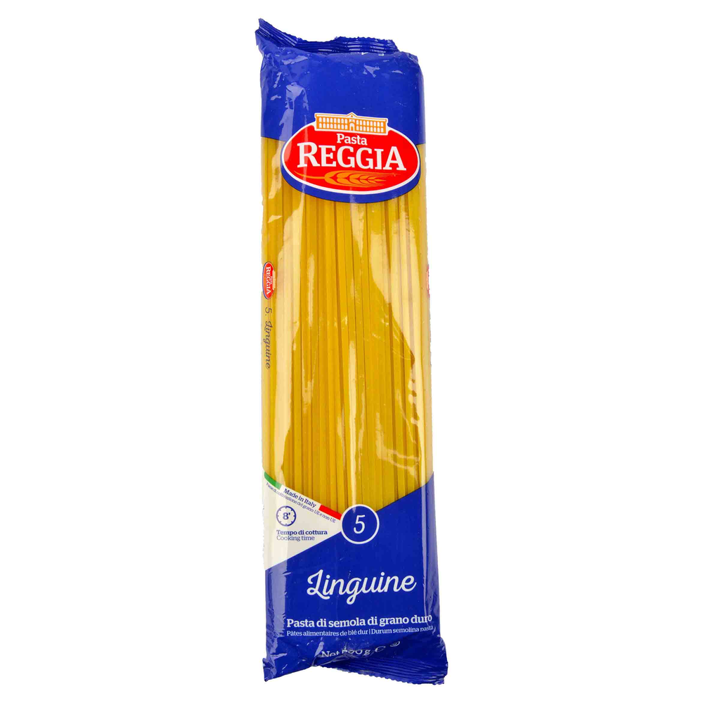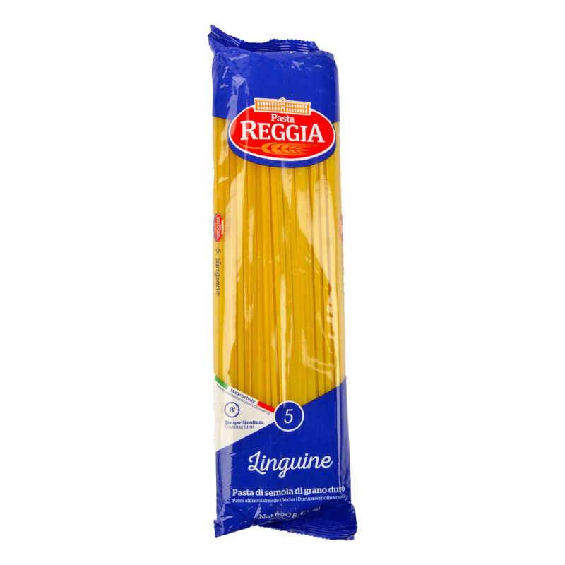 Лингуини Pasta Reggia – это итальянская макаронная продукция из пшеничной муки и воды. Она имеет длинную форму и приятную по вкусу текстуру. Состав продукта включает в себя пшеничную муку, воду и соль.