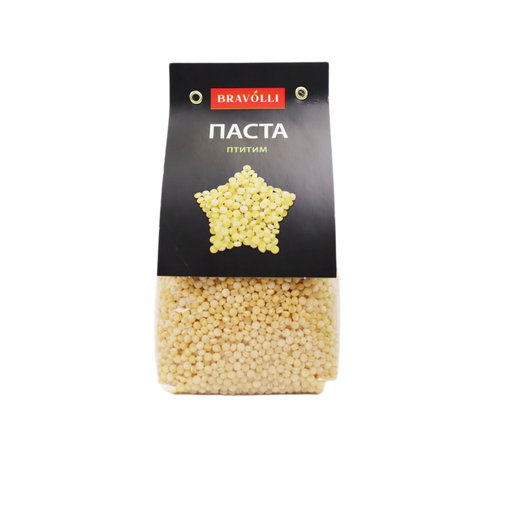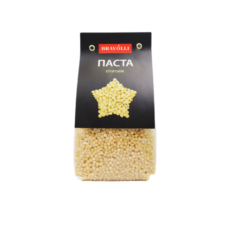 Паста Жемчужная Птитим Bravolli - это вкусный и полезный продукт, приготовленный из натуральных ингредиентов. Она содержит много белков, минералов и витаминов, а также не содержит Гмо. Состав пасты включает в себя пшеницу, масло растительное, соль, патоку и другие природные ингредиенты. Паста имеет приятный аромат и вкус, а также представляет собой идеальное блюдо для всей семьи.