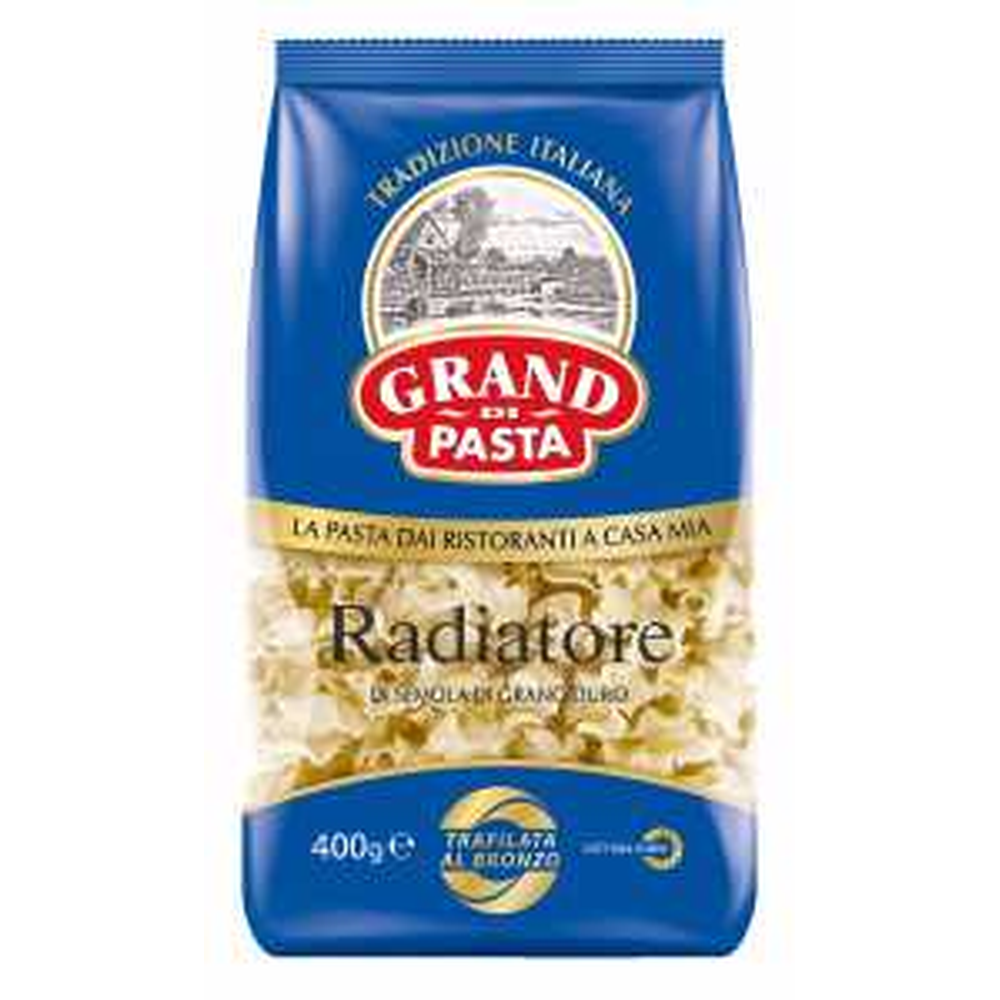 Макароны Grand Di Pasta Radiatore - это вкусные и ароматные макароны из высококачественной пшеницы. Они имеют уникальную форму радиатора, которая позволяет идеально подходить для приготовления соусов и пасты. Состав макарон включает в себя пшеницу, воду и соль.