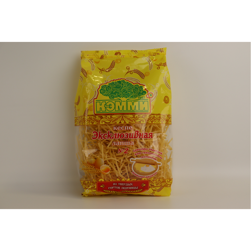 Лапша Кемми Для Лагмана №6 Керемет 1/8 – это вкусная и ароматная лапша из муки пшеницы высшего сорта. Она прекрасно подходит для приготовления лагмана и других блюд из лапши. Состав лапши включает в себя муку пшеницы, пальмовое масло, соль и другие природные ингредиенты. Она производится из натуральных продуктов и имеет приятный аромат и вкус.