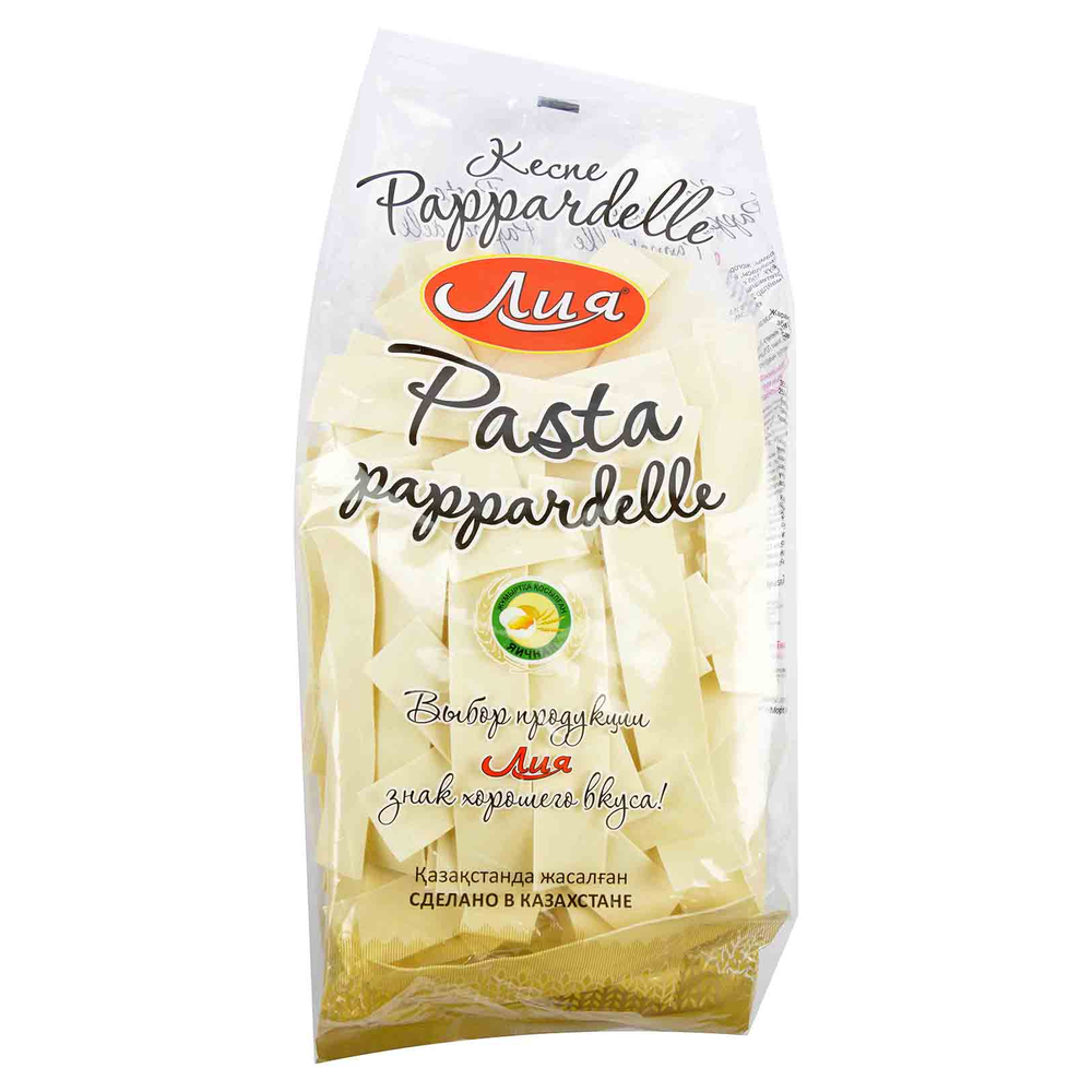 Паста Pappardelle Лия - это итальянский продукт из муки и воды, произведенный из натуральных ингредиентов. Она имеет длинные и широкие ламбарделли, идеально подходящие для приготовления соусов и большинства блюд. Состав пасты включает в себя муку пшеницы, воду, соль и подсолнечное масло.