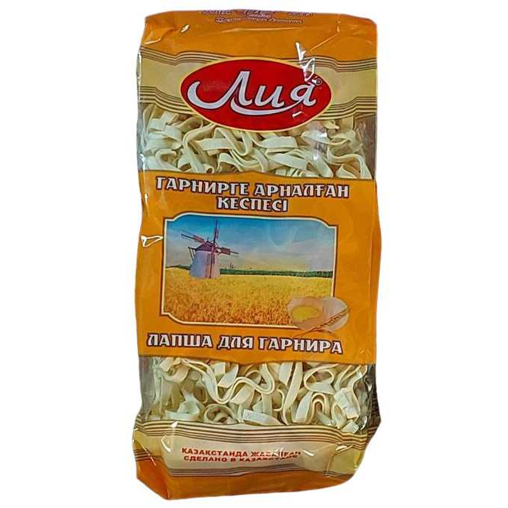 Лапша Лия яичная для гарнира в брикете весом 230 г амм - это продукт, предназначенный для использования в качестве гарнира к основным блюдам. Лапша изготовлена из пшеничной муки и яиц, что придает ей насыщенный вкус и желтый цвет.