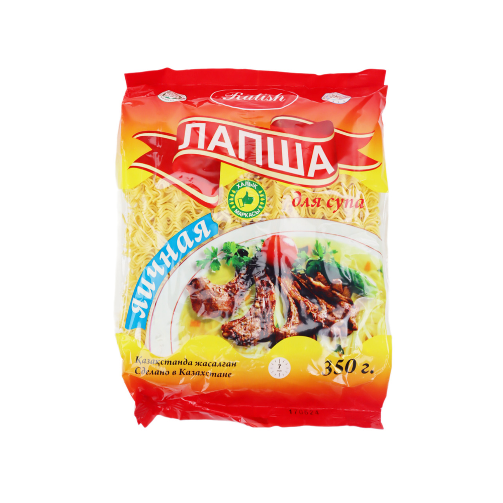 Лапша яичная для супа Ratish - это вкусный и полезный продукт, изготовленный из натуральных ингредиентов. Она представляет собой продукт в виде маленьких палочек с высоким содержанием белка и низким содержанием жира. Состав лапши яичной для супа Ratish включает в себя муку пшеницы, яйцо, соль и природные пряности.