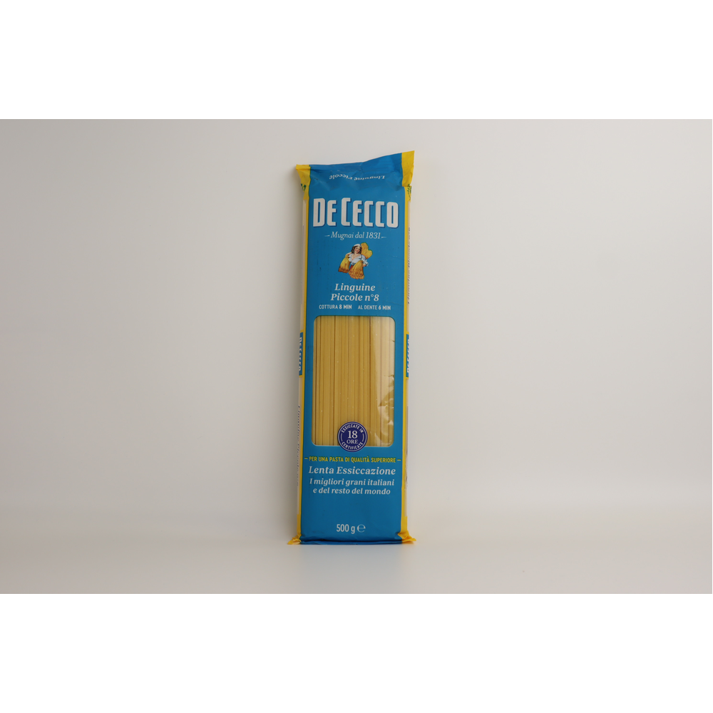 Макаронные изделия De Cecco Linguine Piccole 8 500 г - это итальянские макароны из пшеницы высшего сорта. Они имеют тонкую форму и идеально подходят для приготовления блюд из морепродуктов и мяса. Состав макаронных изделий De Cecco Linguine Piccole 8 500 г включает в себя только пшеницу высшего сорта, морскую соль и воду.