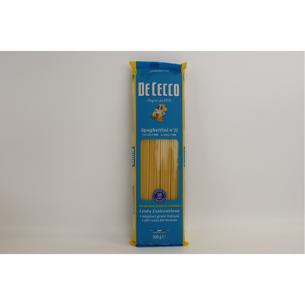 De Cecco Spaghettini 11 - это макаронное изделие из итальянской муки и воды. Оно имеет тонкую форму и идеально подходит для приготовления блюд из макарон. Это изделие производится из натуральных ингредиентов без добавления консервантов и ароматизаторов.