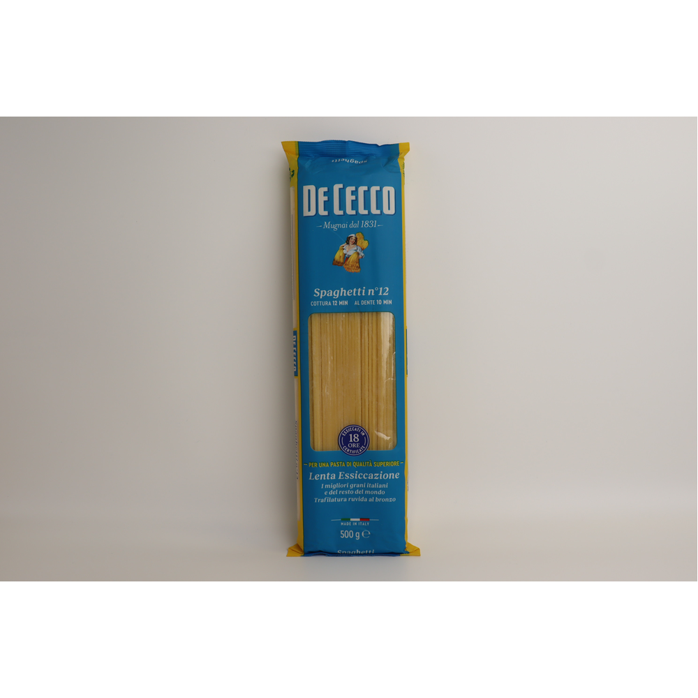 De Cecco Spaghetti - это итальянские макаронные изделия из пшеницы высшего сорта. Они имеют прямоугольную форму и прекрасно подходят для приготовления блюд из макарон. Они произведены из натуральных ингредиентов без добавления консервантов и ароматизаторов. Они имеют высокое содержание белка и низкое содержание жира, что делает их полезными для здорового питания.