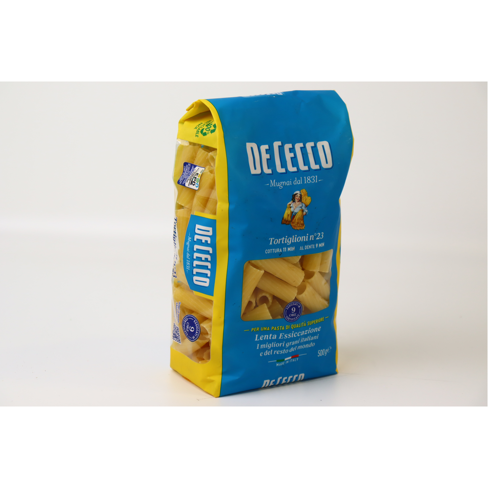 De Cecco Tortiglioni - это макаронное изделие из высококачественной пшеницы для приготовления вкусных блюд. Они имеют форму прутьев, которые прекрасно подходят для приготовления соусов и гарниров. Изделие имеет вес в 500 г амм и состоит из высококачественной пшеницы, масла и воды.