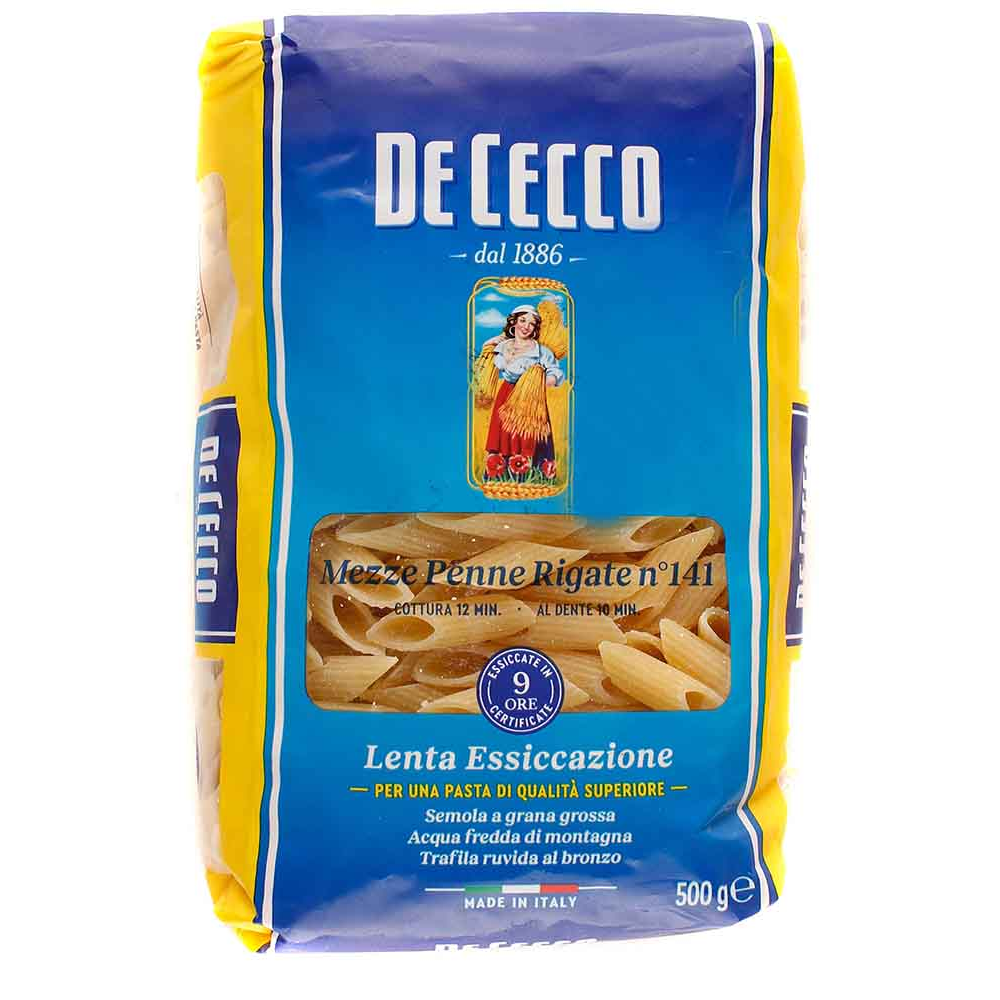 Макаронные изделия De Cecco Mezze Penne Rigate - это прекрасный выбор для приготовления вкусных и полезных блюд. Они изготовлены из высококачественной пшеницы и проходят тщательную проверку качества. В состав изделия входит только натуральные ингредиенты, без добавления консервантов. Вес изделия составляет 141 500 г амм.