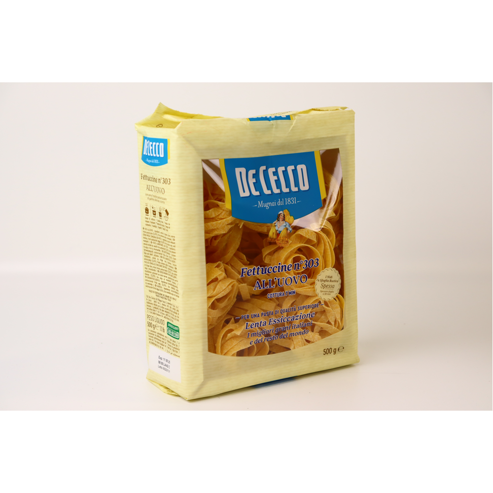 Fettuccine all uovo - это макаронное изделие из муки и яиц, изготовленное по традиционной итальянской рецептуре. Оно имеет прямоугольную форму и прекрасно подходит для приготовления различных блюд. Состав изделия: мука пшеничная, яйца куриные, соль.