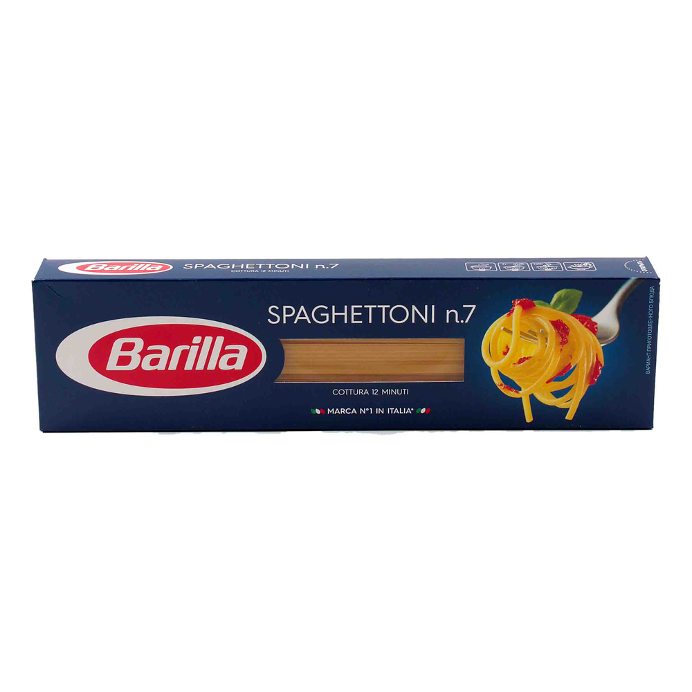 Спагеттони Barilla заняли свое место в меню гурманов всего мира. Они отличаются от классического формата спагетти большим диаметром и прекрасно подходят для самых разнообразных соусов, особенно хорошо они сочетаются с соусами на основе свежих овощей. Несмотря на большую толщину, спагеттони сохранили длину и гибкость классических спагетти. Они прекрасно сочетаются с разнообразными соусами, от простых до самых изысканных. Благодаря большей толщине, спагеттони Barilla великолепно раскрывают вкус яр