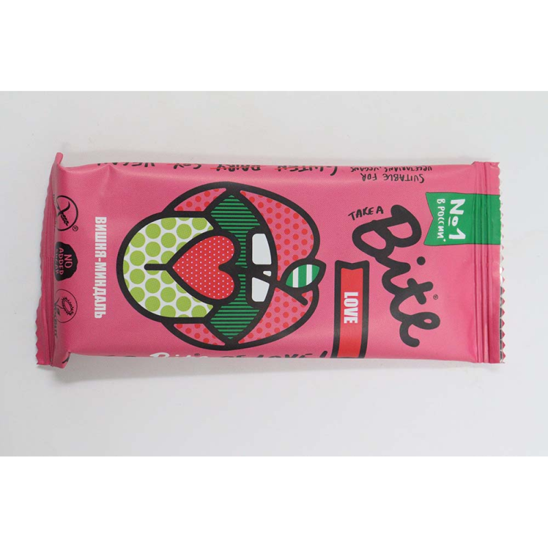 Батончик Bite Орех/Фрукт Вишня/Миндаль Лавбайт - это вкусное и полезное печенье с натуральными ингредиентами. Оно содержит орехи, фрукты и миндаль, а также не содержит Гмо. Вес батончика составляет 45 г амм.