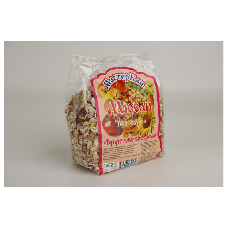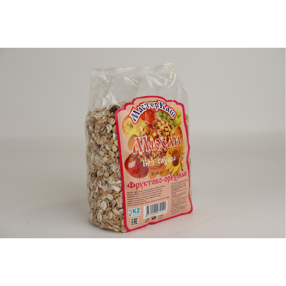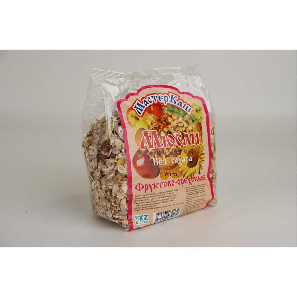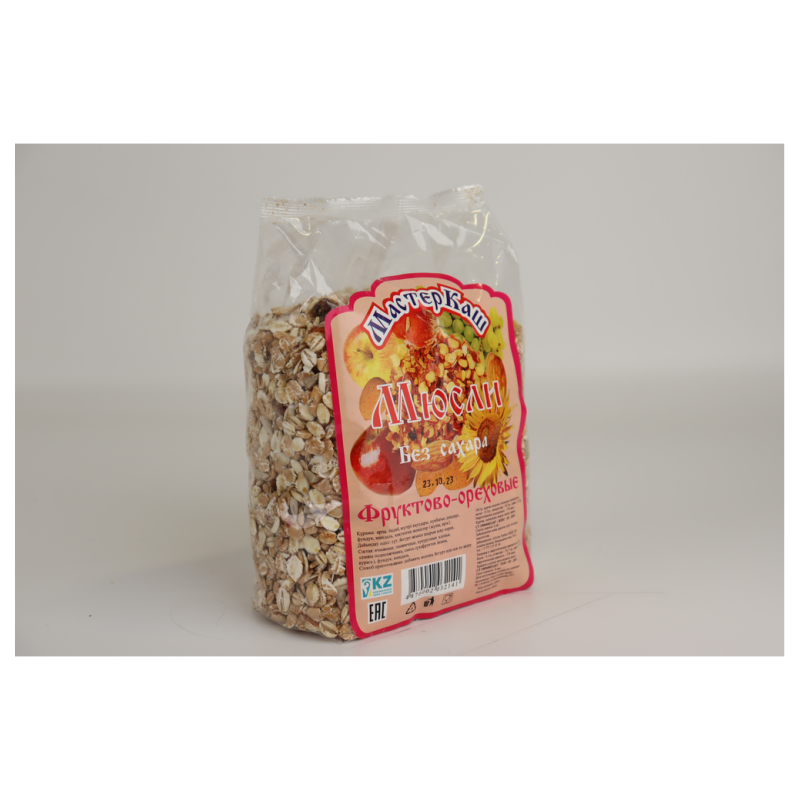 Мюсли фруктово-ореховые мастеркаш 300 г Картон Упак - это вкусные и полезные мюсли с добавлением фруктов и орехов. Они содержат муку пшеницы, сахар, масло растительное, сухофрукты, орехи, соль, природные ароматизаторы. Все ингредиенты проходят строгую проверку качества. Мюсли прекрасно подходят для завтрака или перекуса.