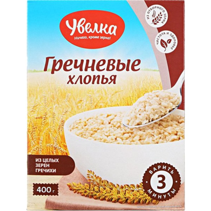Гречневые хлопья «Увелка» – питательный и диетический продукт. Соблюдая весь процесс производства (зерна гречихи расплющивают, предварительно разрезав их), сохраняются все полезные вещества и витамины.