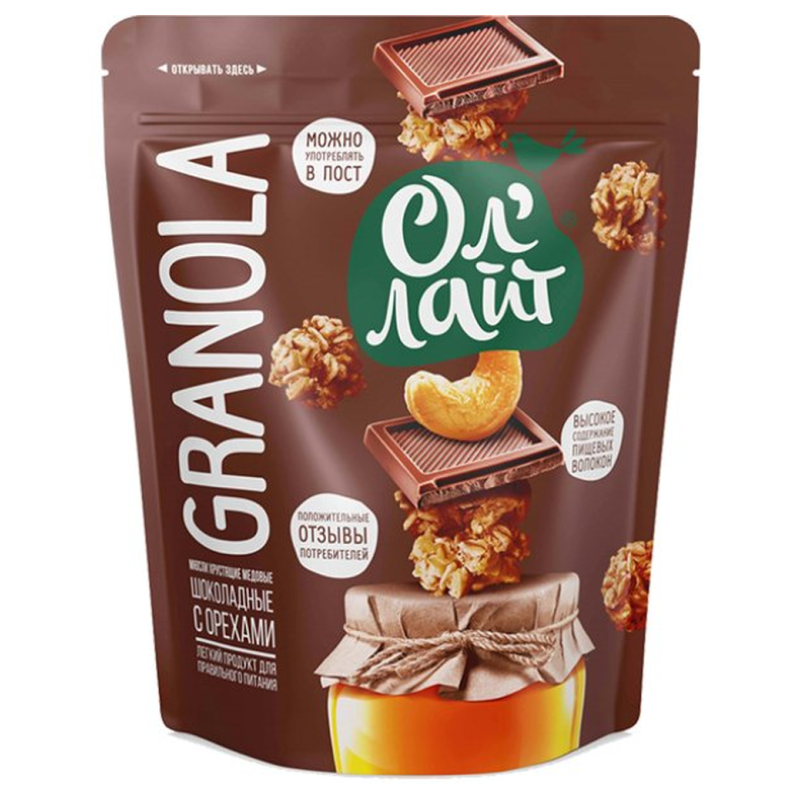 Завтрак Oho Choco - это вкусный и полезный сухой завтрак из орехов, сладостей и цельнозерновых круп. Он содержит в себе много полезных витаминов и микроэлементов. Состав завтрака Oho Choco включает в себя микс из орехов, цельнозерновых круп, шоколадных кусочков и других ингредиентов.