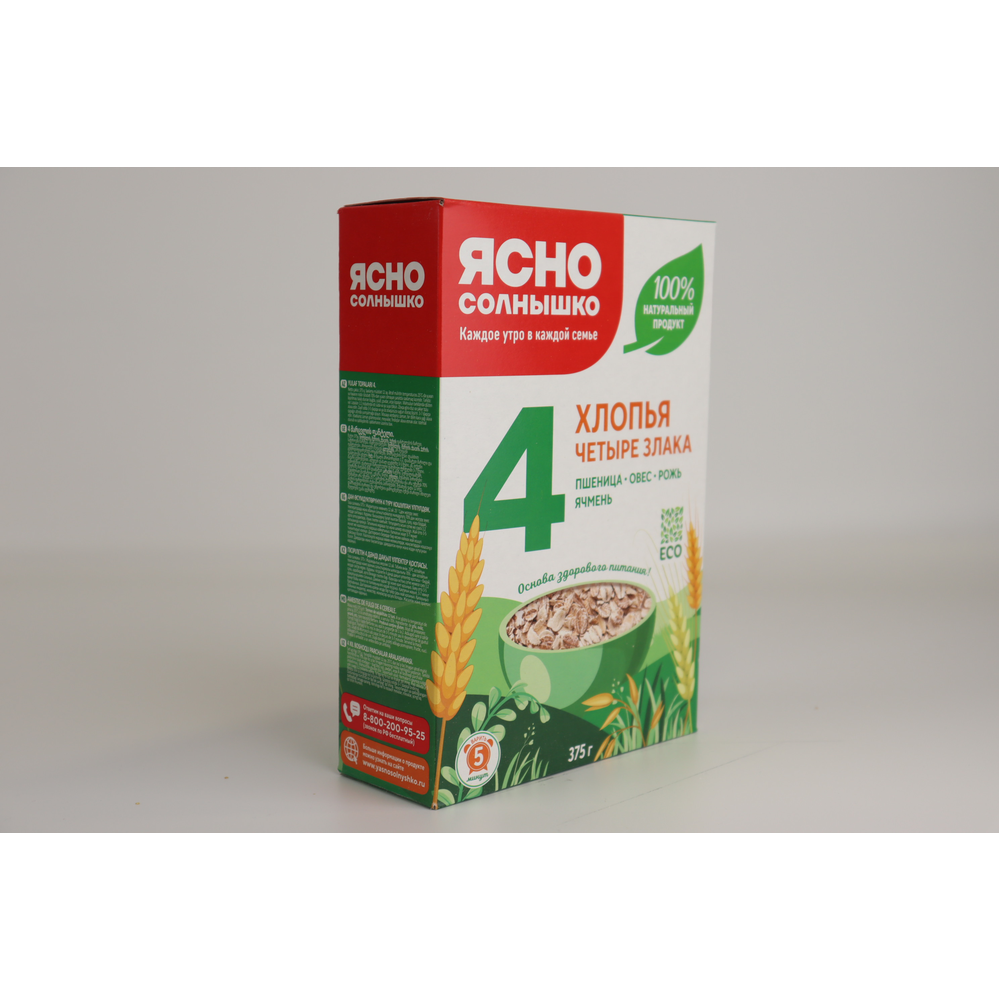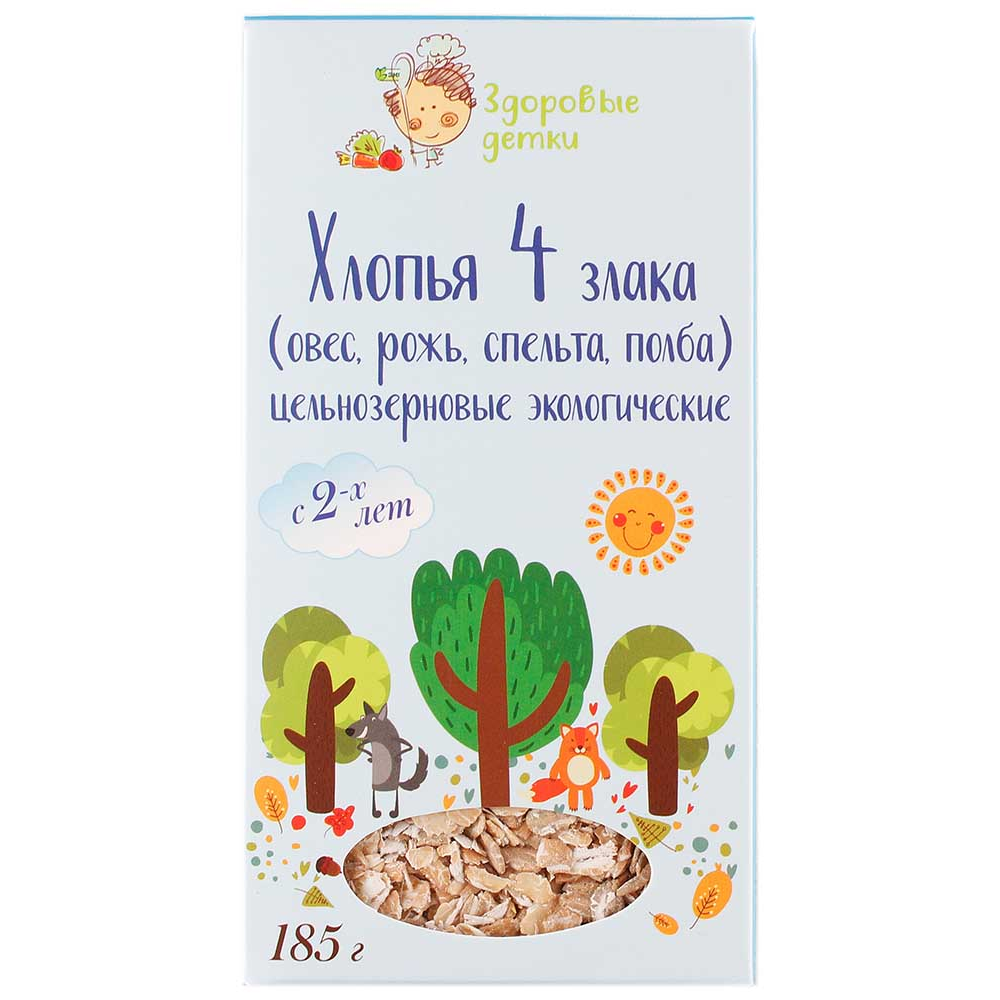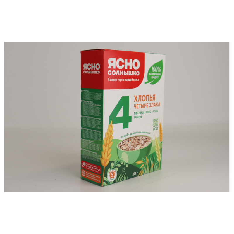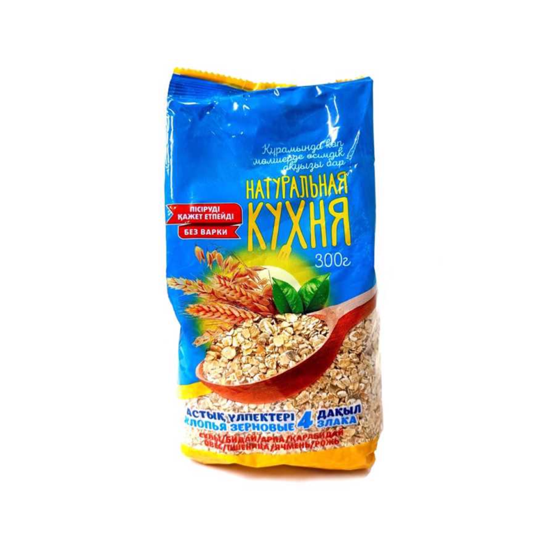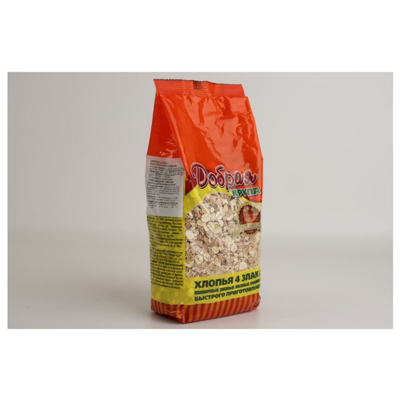 Смесь четырех видов хлопьев: овса, пшеницы, ячменя, ржи - отличный выбор на завтрак. Содержит витамины, минералы и клетчатку. Идеальный выбор для правильного питания.