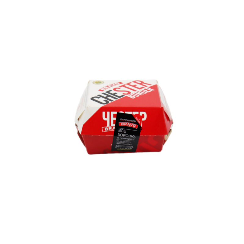 Честер Бургер Bravo - это сочный и аппетитный бургер весом 230 г амм. Сочное мясное фаршевое котлета, свежие овощи, сыр и аппетитная булочка - все это делает этот бургер идеальным выбором для перекуса или быстрого обеда. Попробуйте его с картофельными дольками и газированной водой для полного удовлетворения вкусовых рецепторов. Не упустите возможность попробовать Честер Бургер Bravo прямо сейчас!