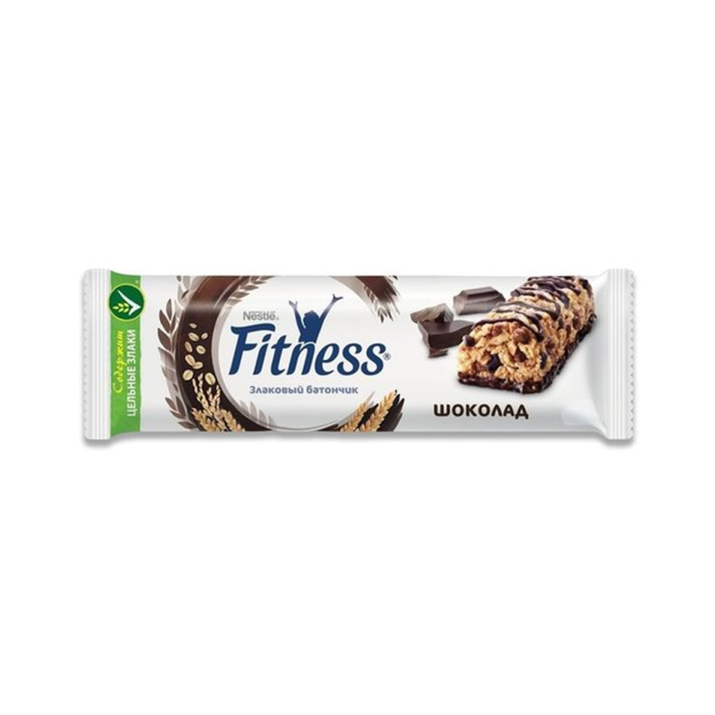 Злаковый батончик Fitness из цельных злаков с шоколадом содержит много клетчатки и мало жира. Клетчатка регулирует пищеварение. Сложные углеводы перевариваются медленнее и позволяют сохранять чувство сытости дольше. Это отличная возможность для завтрака на ходу, как альтернатива полноценному завтраку и заряд питательной энергии для успешного начала дня.