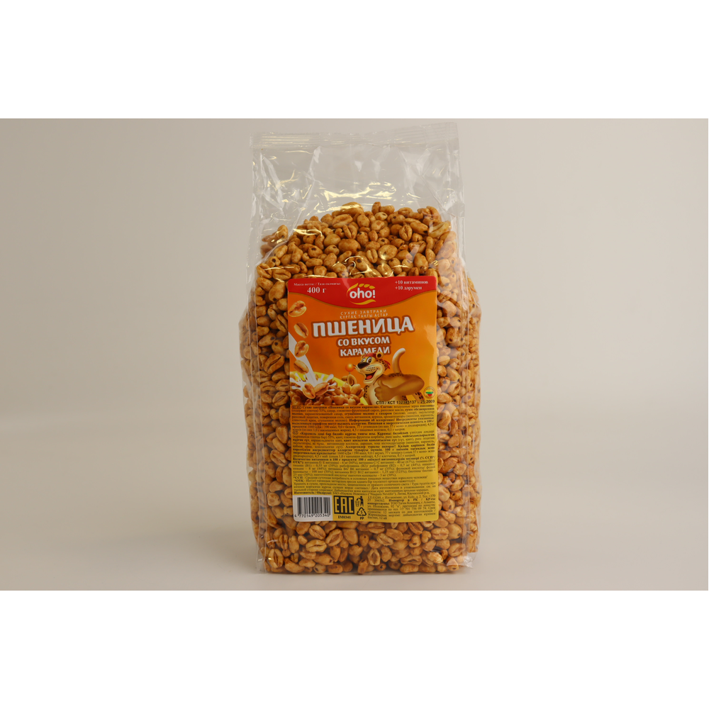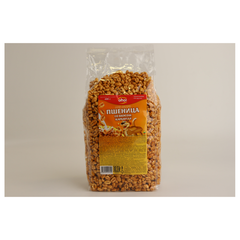 Завтрак сухой воздушная пшеница с вкусом карамели - это вкусное и полезное блюдо, которое состоит из воздушной пшеницы, корицы, сахара и карамели. Оно имеет приятный аромат и вкус, а также полезные питательные вещества. Вес пакета составляет 150 г амм.