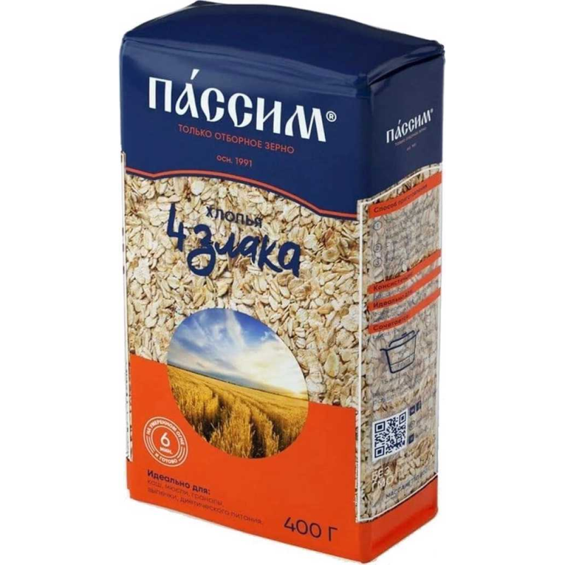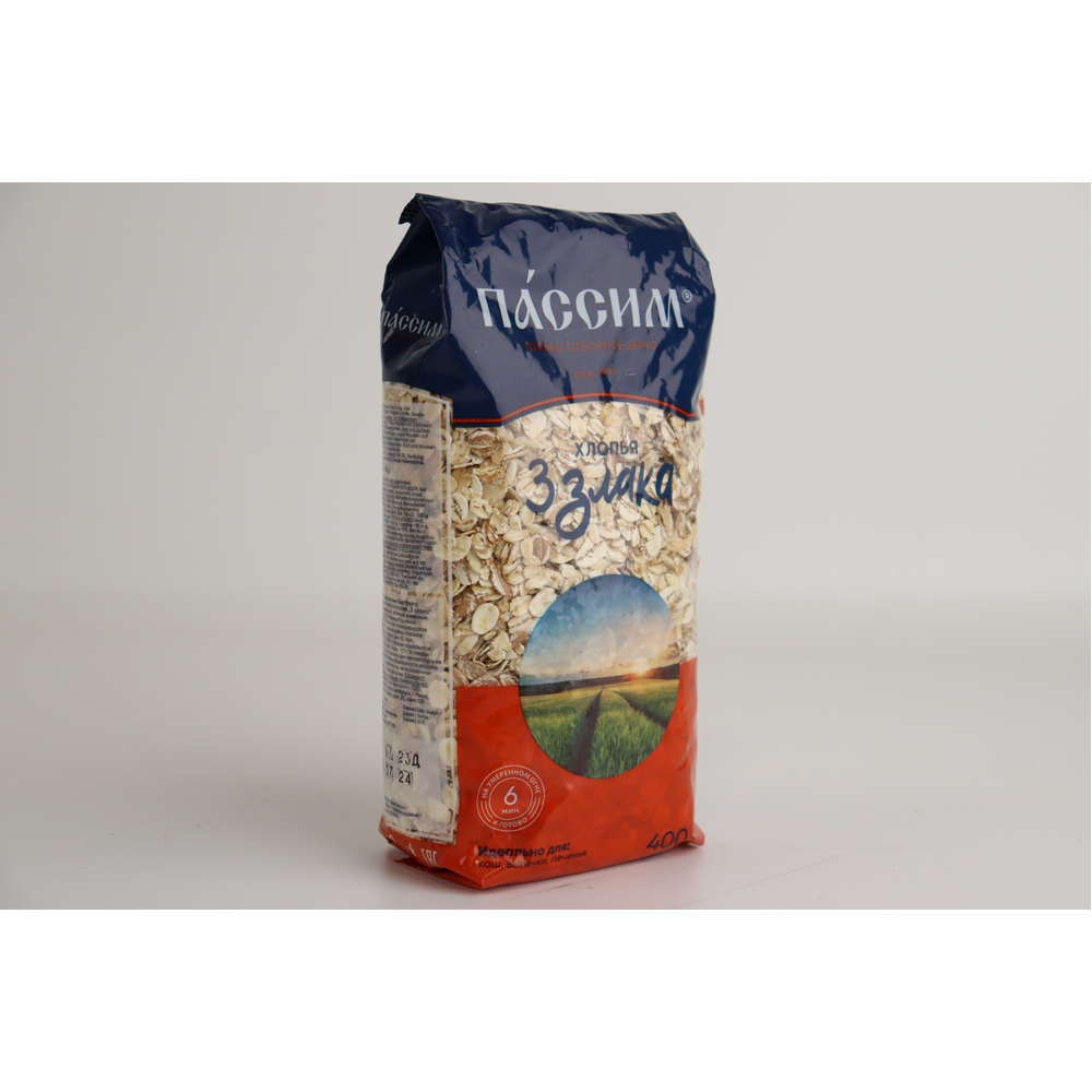 Хлопья Пассим 3 Злака – это продукт из трех злаковых культур: пшеницы, овса и рожи. Они представлены в виде мелких крупинок, которые прекрасно подходят для приготовления завтраков и других блюд. Продукт имеет в составе минеральные соли, витамины и белки.