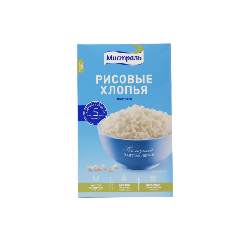 Хлопья Мистраль Рисовые Нежные – это нежные рисовые хлопья из качественного риса, произведенные по традиционной рецептуре. Они имеют приятный вкус и аромат, а также полезные питательные свойства. Состав хлопьев: рис, соль, сахар, пальмовое масло.