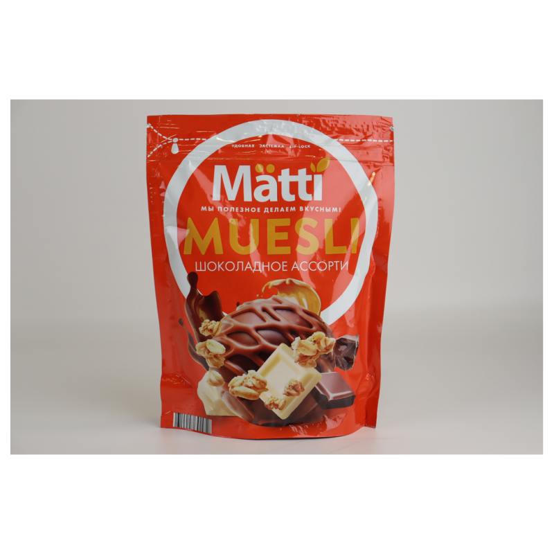 Мюсли Matti Doy Pack - это ассорти из вкуснейшего шоколада весом 250 г амм. Состав продукта включает в себя молочный шоколад, конфеты и пряности. Этот ассорти предназначен для настоящих ценителей шоколада, которые любят наслаждаться вкусом и ароматом продукта.