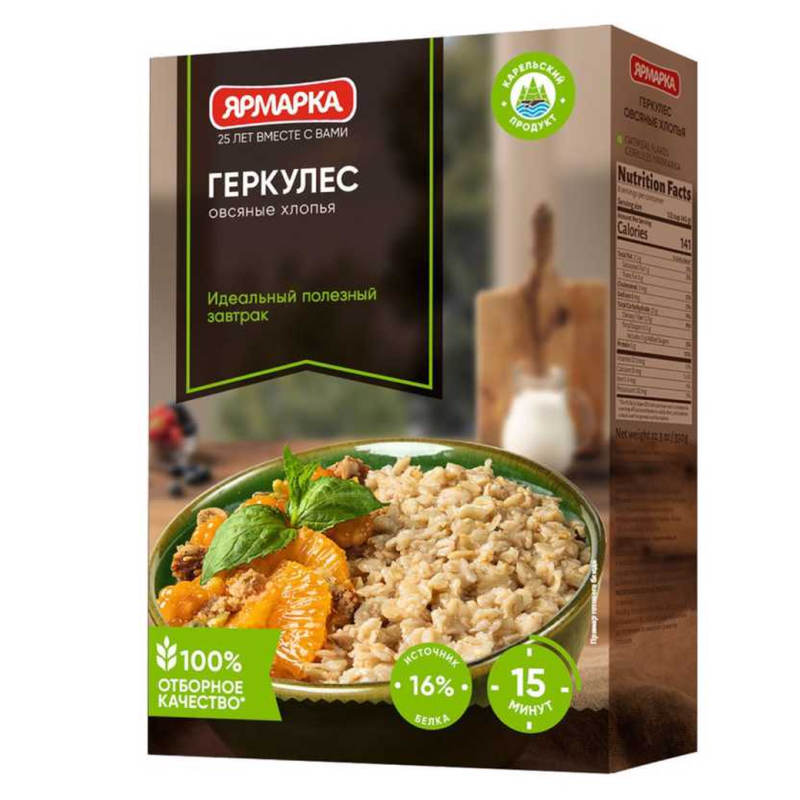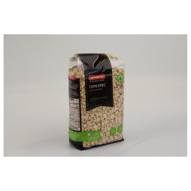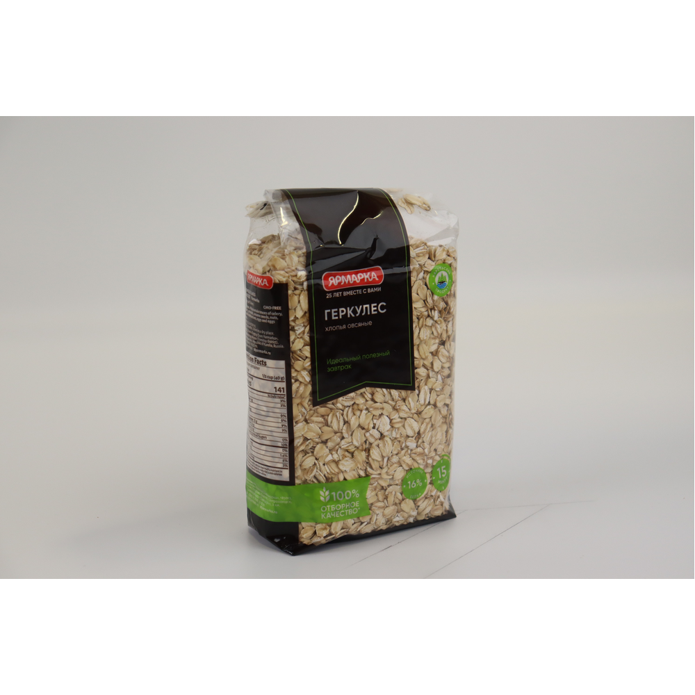 Хлопья овсяные «Геркулес» от «Ярмарка» в упаковке весом 350 г амм представляют собой продукт, изготовленный из овса. Овсяные хлопья обычно являются источником клетчатки и других питательных веществ.