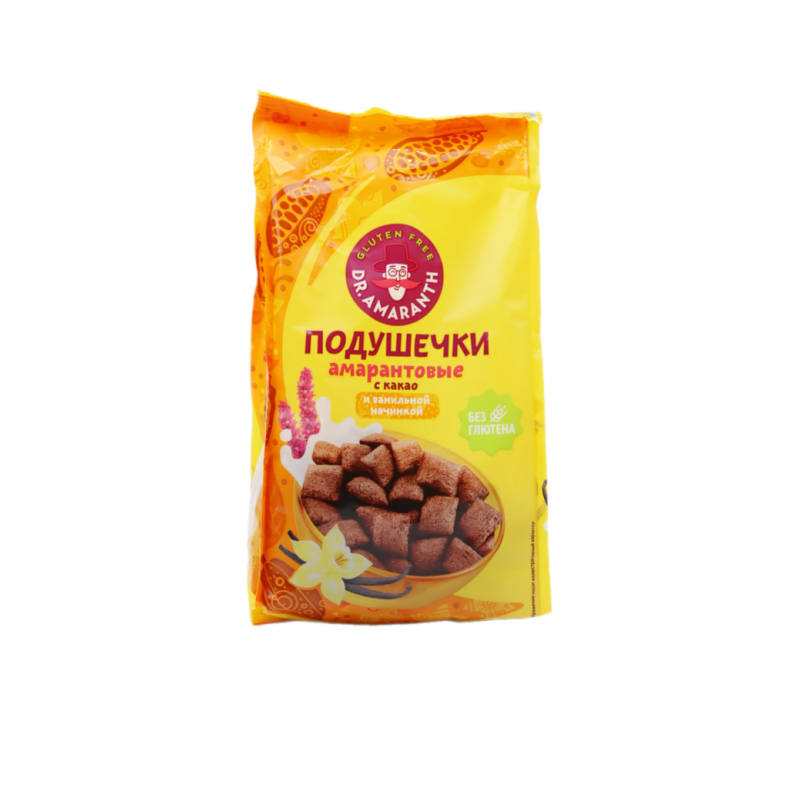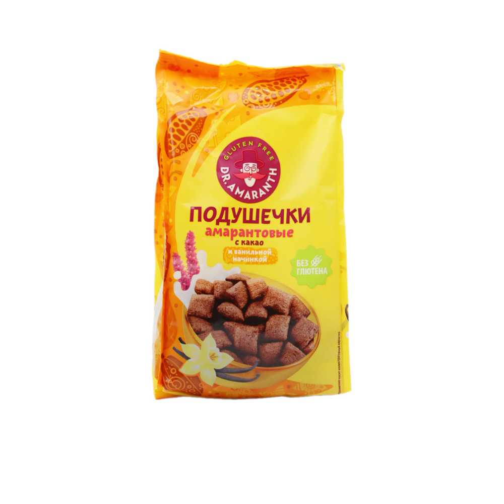 Нежные подушечки Dr. Amaranth с амарантом и нежным ванильно-какао вкусом - идеальное угощение для любителей сладкого! Этот продукт сочетает в себе натуральные ингредиенты и неповторимый вкус, который покорит ваш вкусовой рецептор. Попробуйте добавить эти подушечки в йогурт или молоко для завтрака или перекуса, или же просто наслаждайтесь ими в чистом виде. Попробуйте сегодня и ощутите волшебство вкуса!