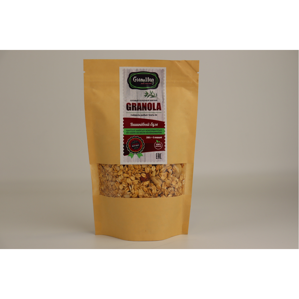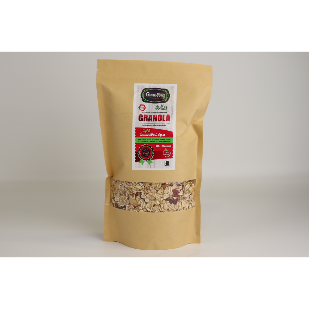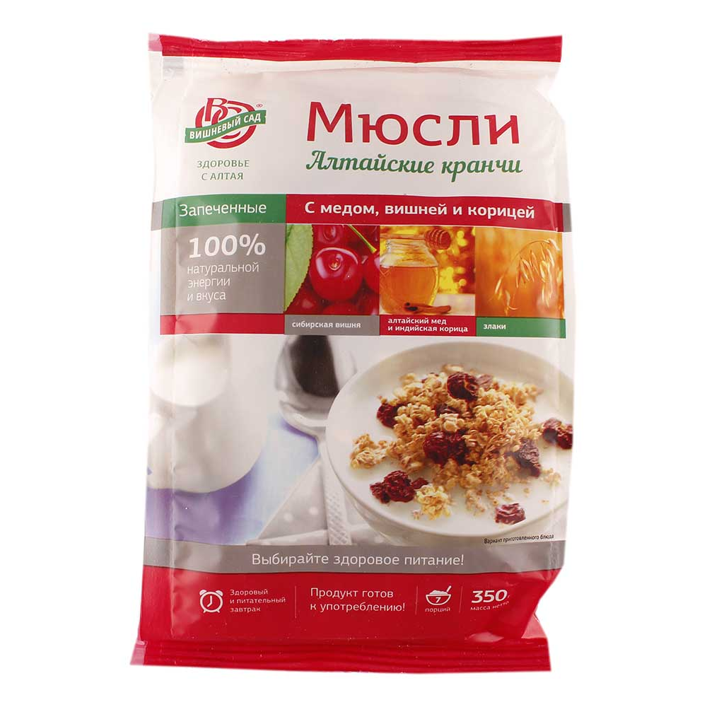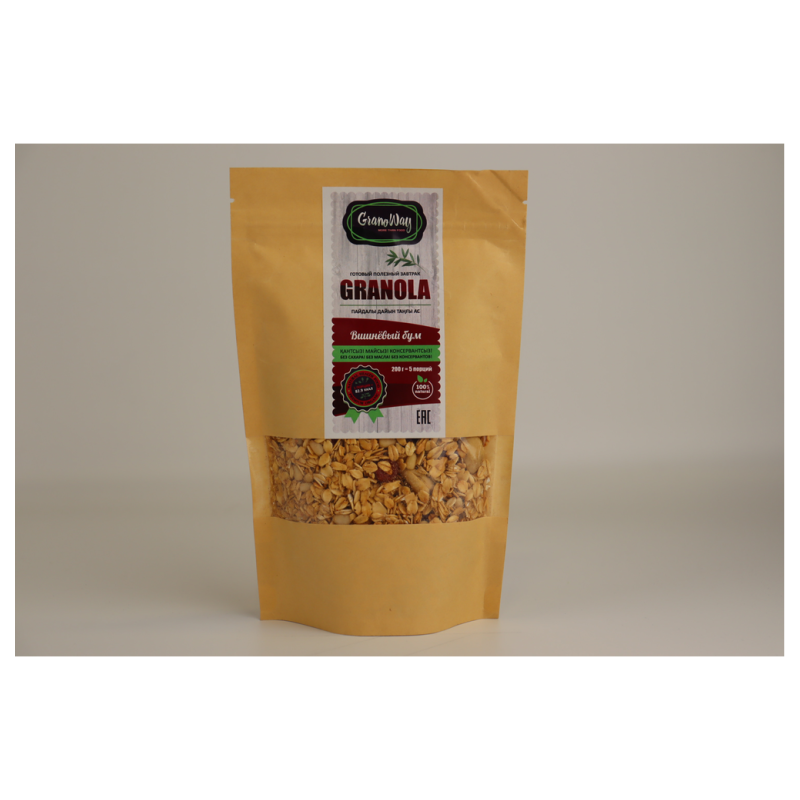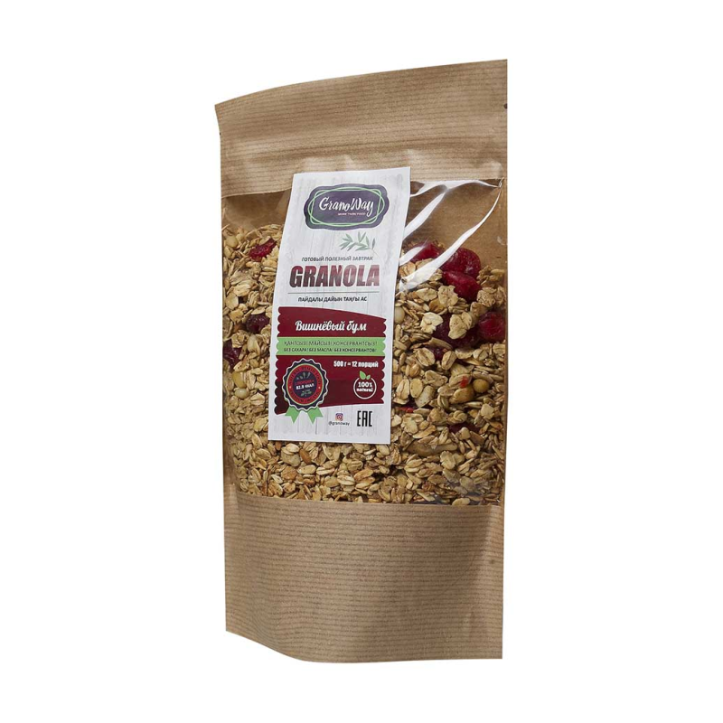 Богатая клетчаткой и витаминами гранола дополнена орехами, ароматными ягодами вишни и шоколадными нотками корицы. Идеальный выбор для вкусного и полезного завтрака!