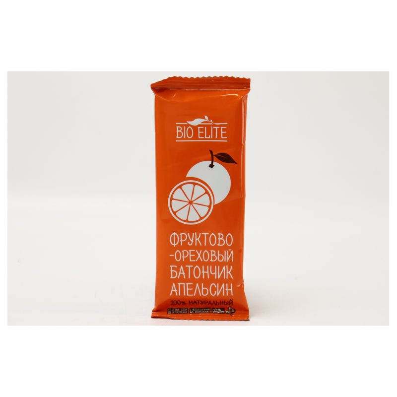 Батончик Bio Elite с апельсином и фруктами/орехами - это вкусное и полезное питание для здорового образа жизни. Он содержит натуральные ингредиенты, включая орехи, фрукты, мёд, муку и масло кокоса. Батончик произведен из натуральных ингредиентов без добавления искусственных красителей и ароматизаторов. Вес одной упаковки составляет 35 г амм.